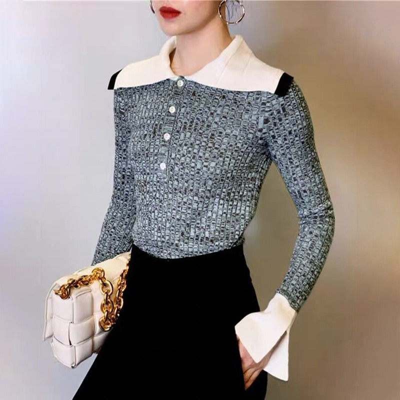 Blusa de estampado geométrico con manga acampanada y material de algodón y poliéster