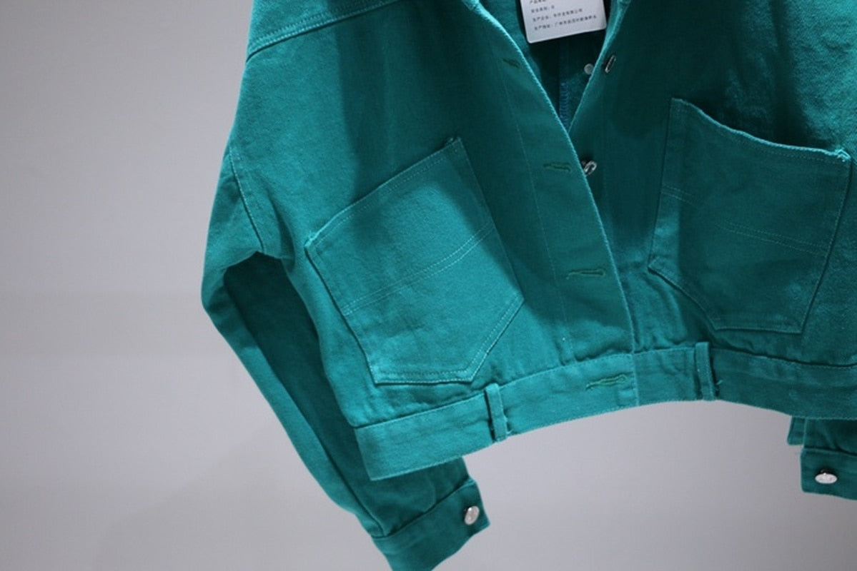 Chaqueta de estampado sólido con cuello vuelto, decoración de bolsillo y material de algodón