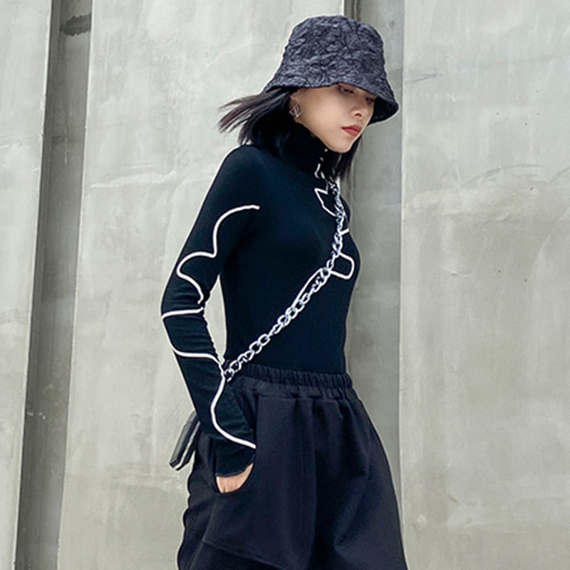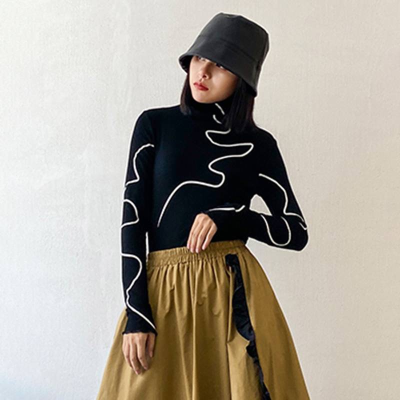 Tops de cuello alto de manga completa con estampado de poliéster y algodón de punto