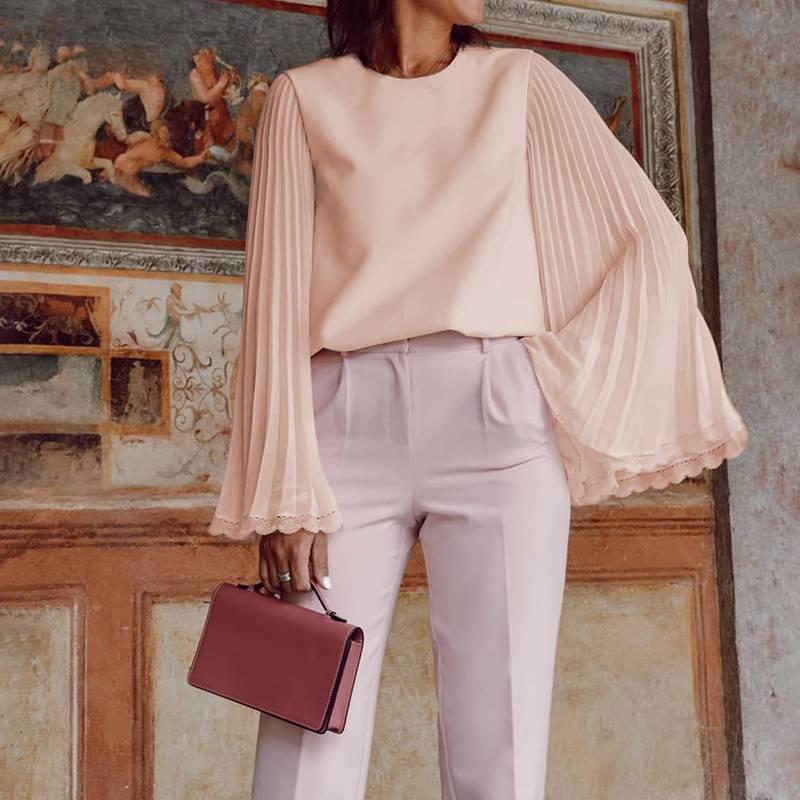 Trabaja duro para conseguir una blusa de gasa acampanada