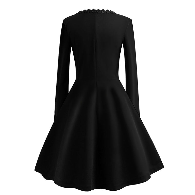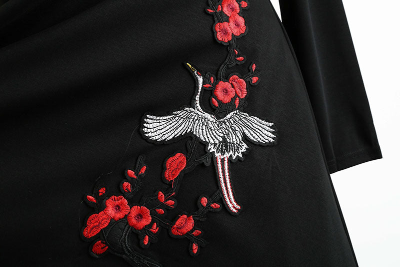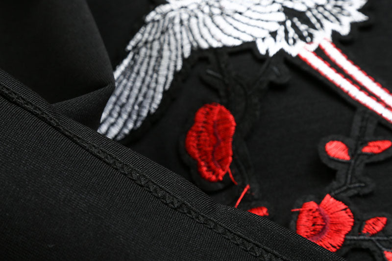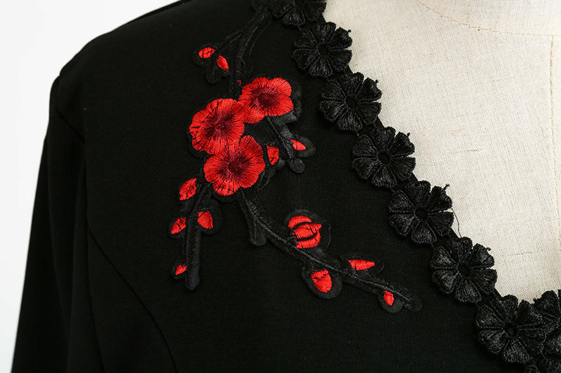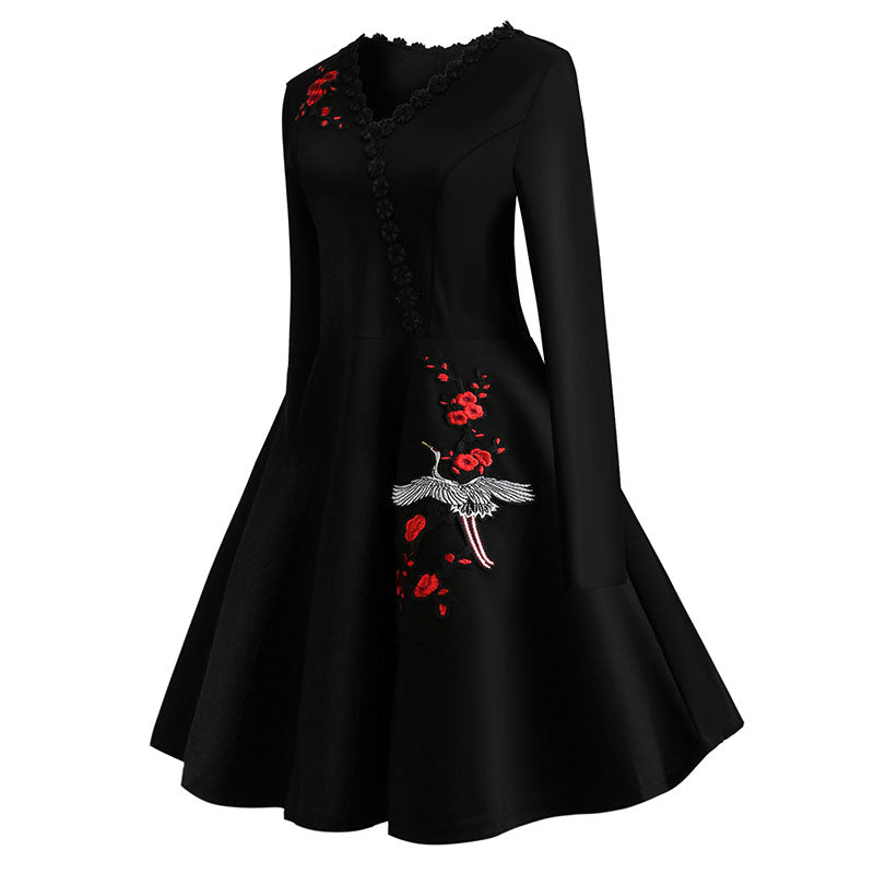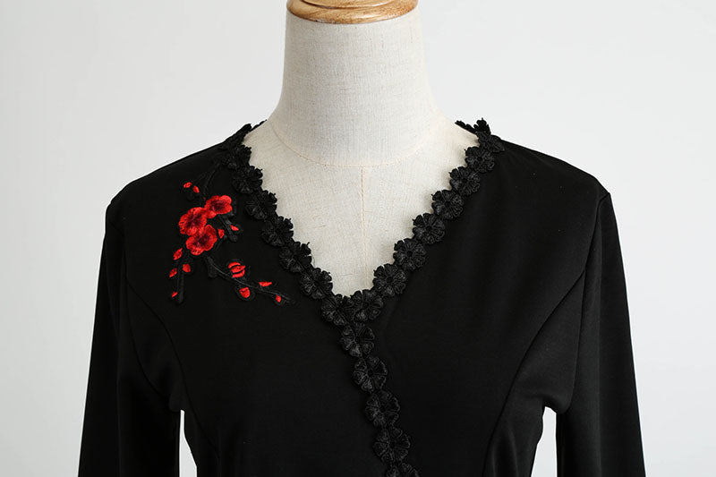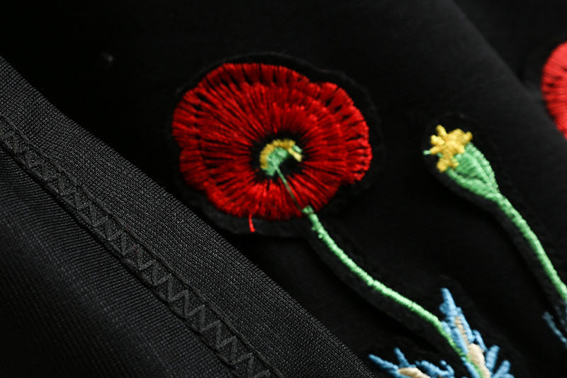 This midi dress is the perfect style to create a feminine look that is easy to wear and flattering. The embriodery design has a look that is both sophisticated and whimsical. Black color color is perfect for any occasion.