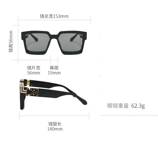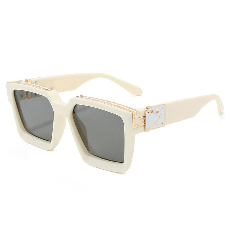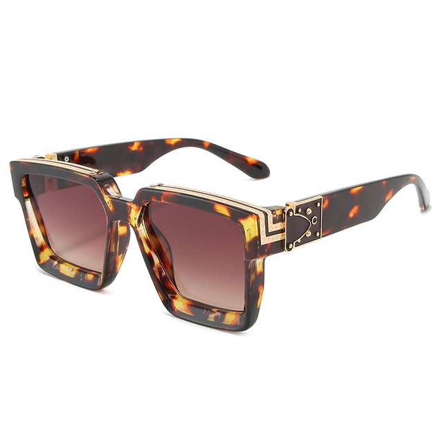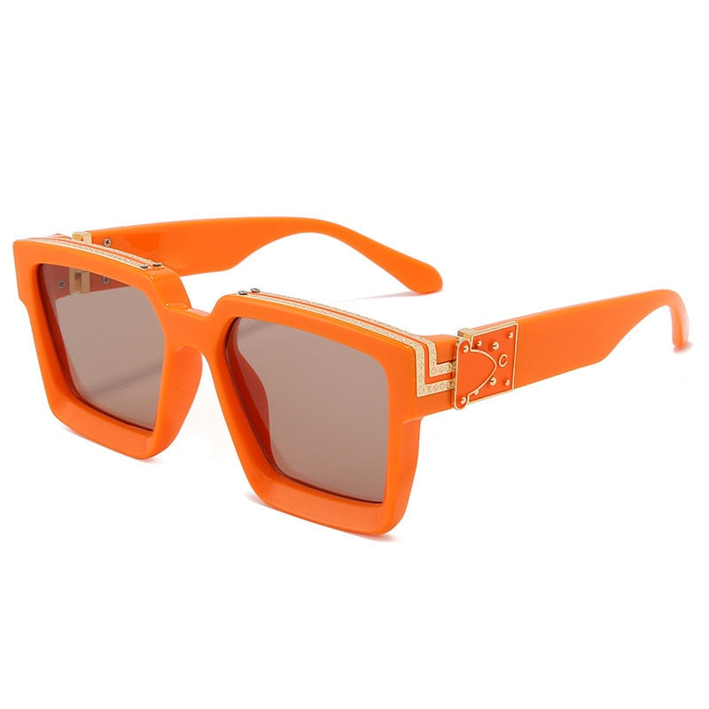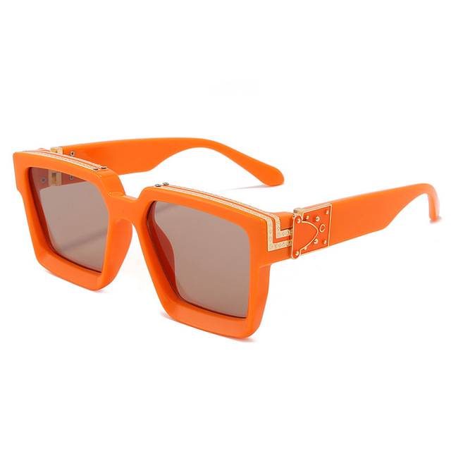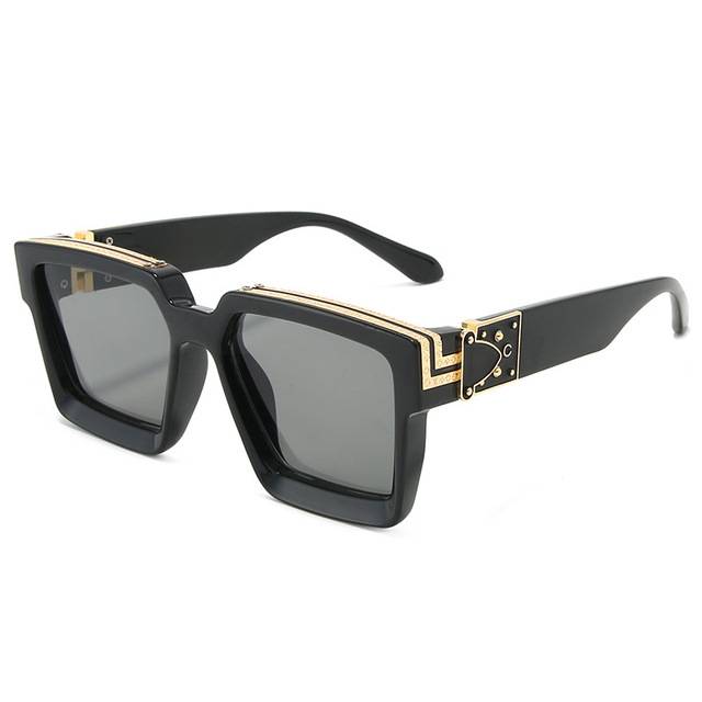 Gafas de sol cuadradas retro con marco de plástico con lentes de plástico UV400 y decoración con detalles dorados