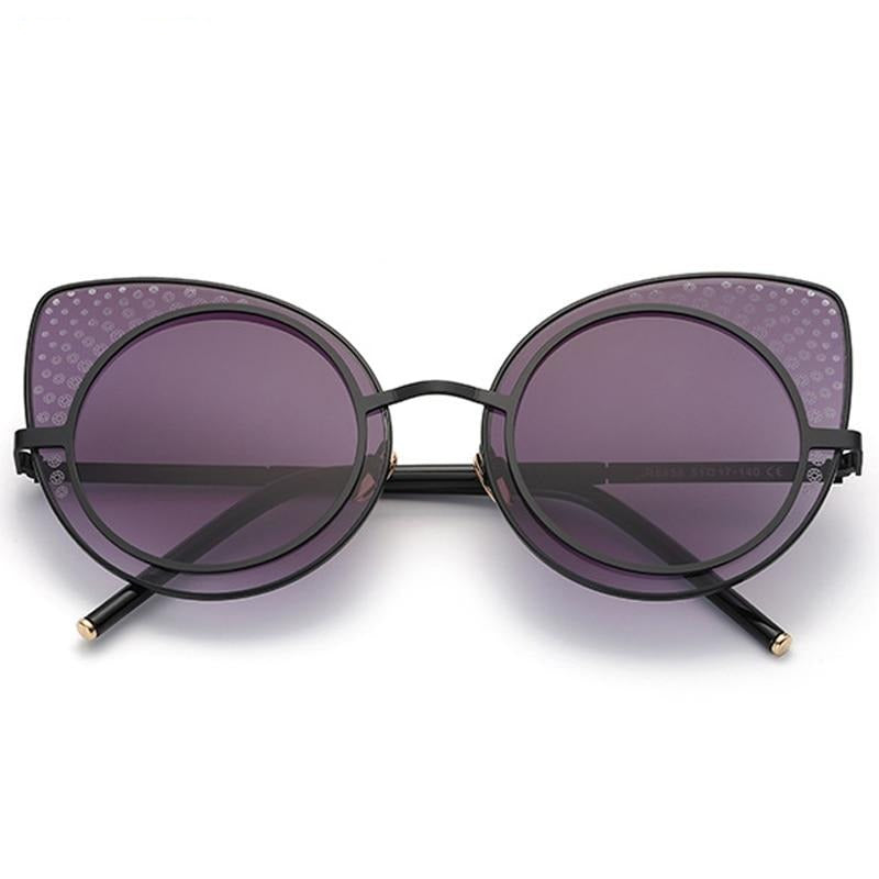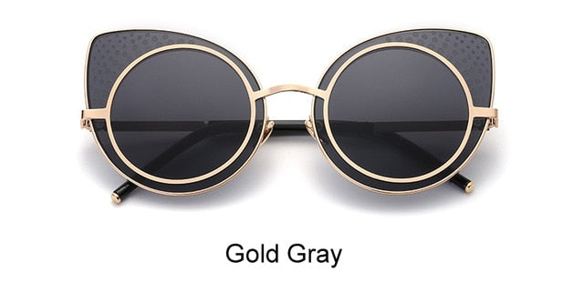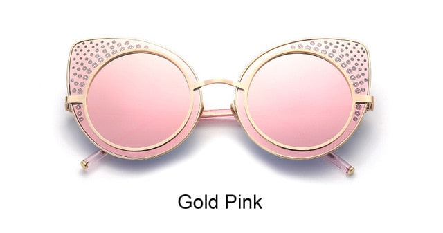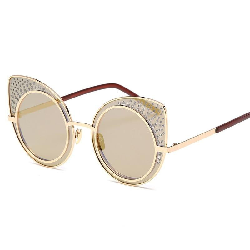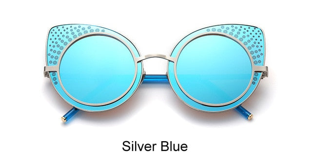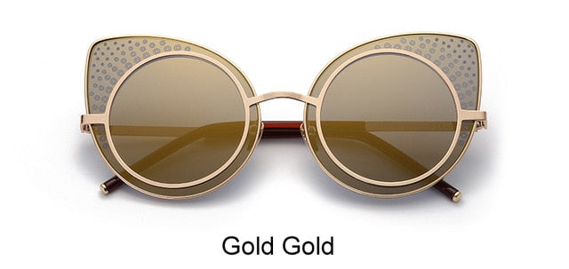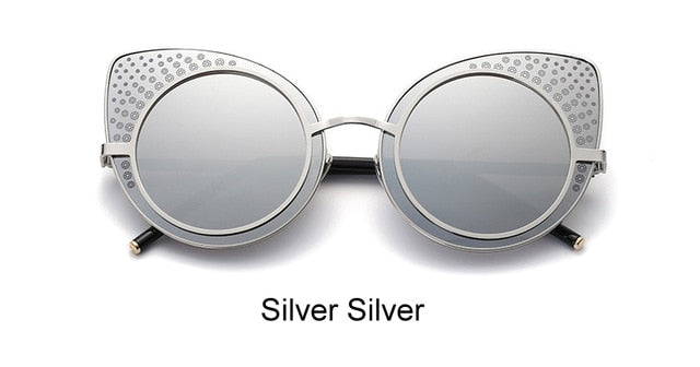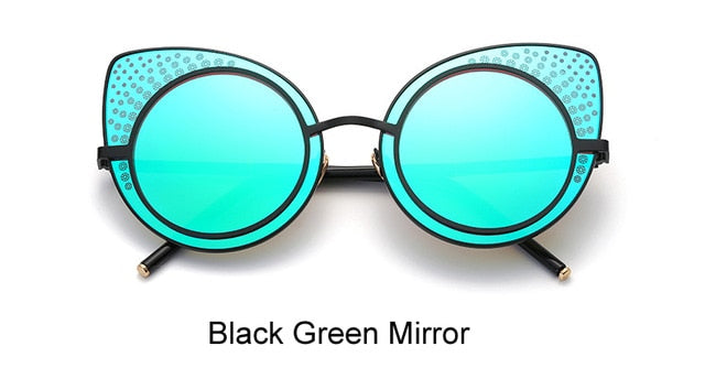 Gafas de sol ojo de gato de espejo con montura de aleación y lente de espejo UV400