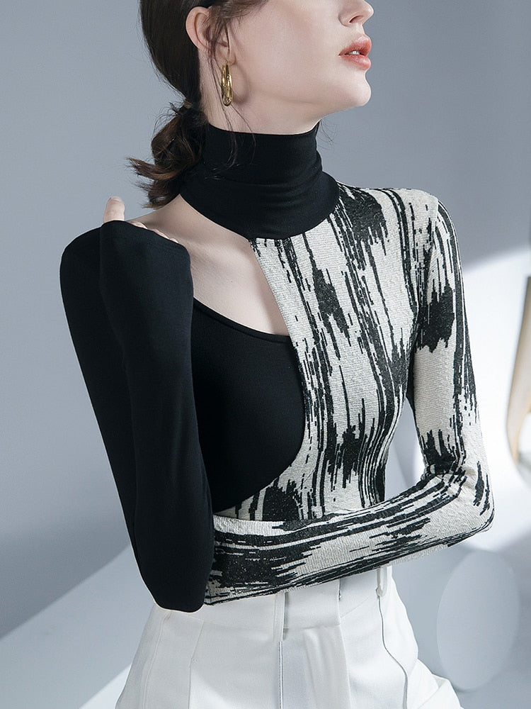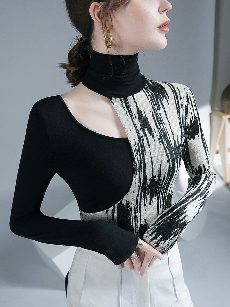 Glamorous and fresh, this women's blouse is a beautiful addition to your work or casual wear wardrobe. Soft and stretchy, it's a simple piece that makes a bold and sophisticated statement. The elegant viscose material is a lightweight option that is perfect for the warmer seasons. The half-solid and geometric pattern has a slight shimmer to it that is sure to give a stylish edge to any outfit.