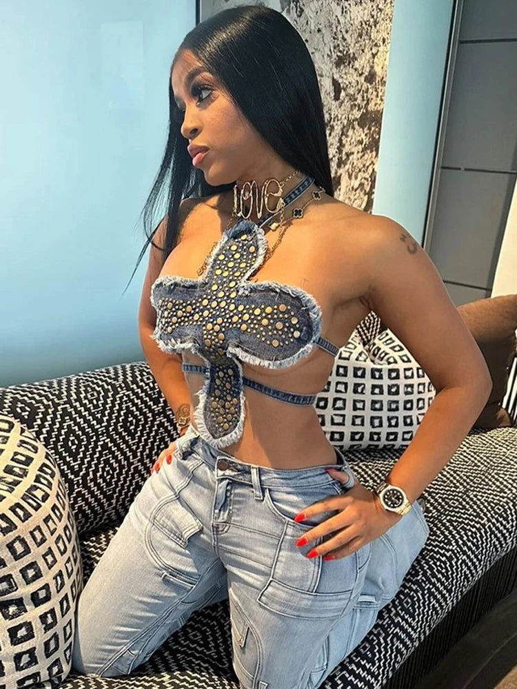 Indulge in the perfect blend of comfort and style with our Let Me Whisper Crop Top! Made from a luxurious denim fabric blend of cotton and polyester, this short length top is designed with a solid pattern and a daring backless decoration. Make a statement and turn heads with every wear.