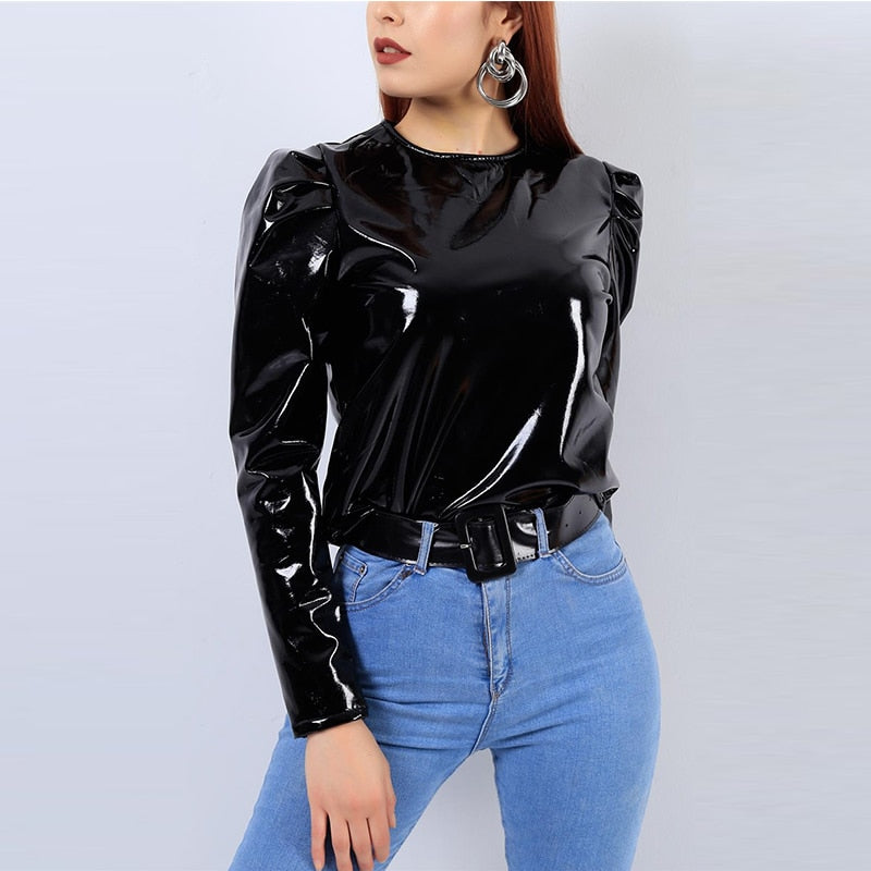 This women's shirt makes an excellent addition to any wardrobe. Crafted with a pair of long puff sleeves that are stylishly detailed for a glamorous feel. The matching solid black color makes it a stylish choice for any occasion. Made from high-quality materials, it's a wardrobe staple.
