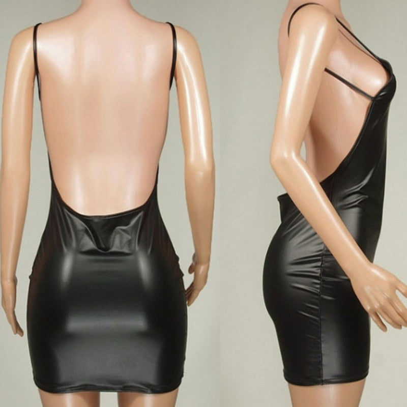 An on-trend mini dress that is a refreshing alternative to the typical style. The backless design keeps this frock from looking frumpy or overdone. The spaghetti strap provides a flattering neckline for an easy alternative to a traditional dress. The sleeveless style keeps the wearer feeling cool and comfortable. This stylish style is an elegant yet casual option that can be accessorized with a variety of looks.