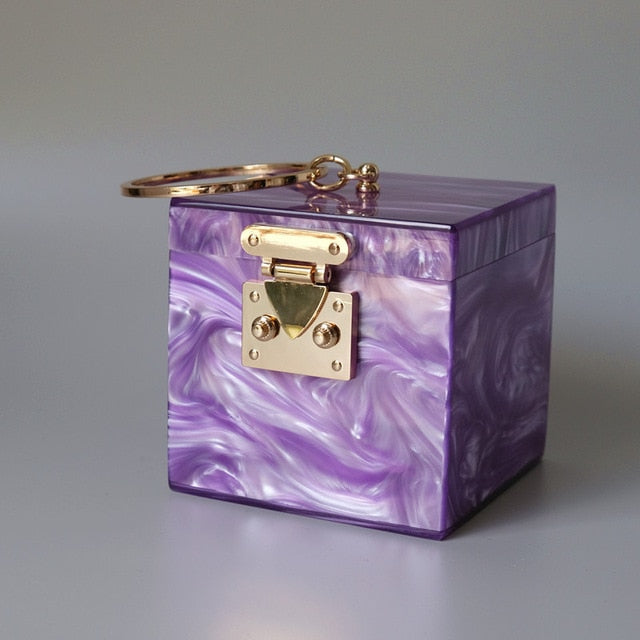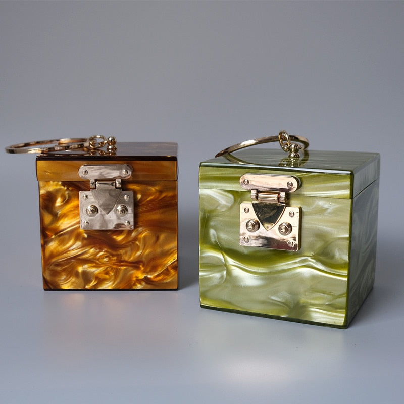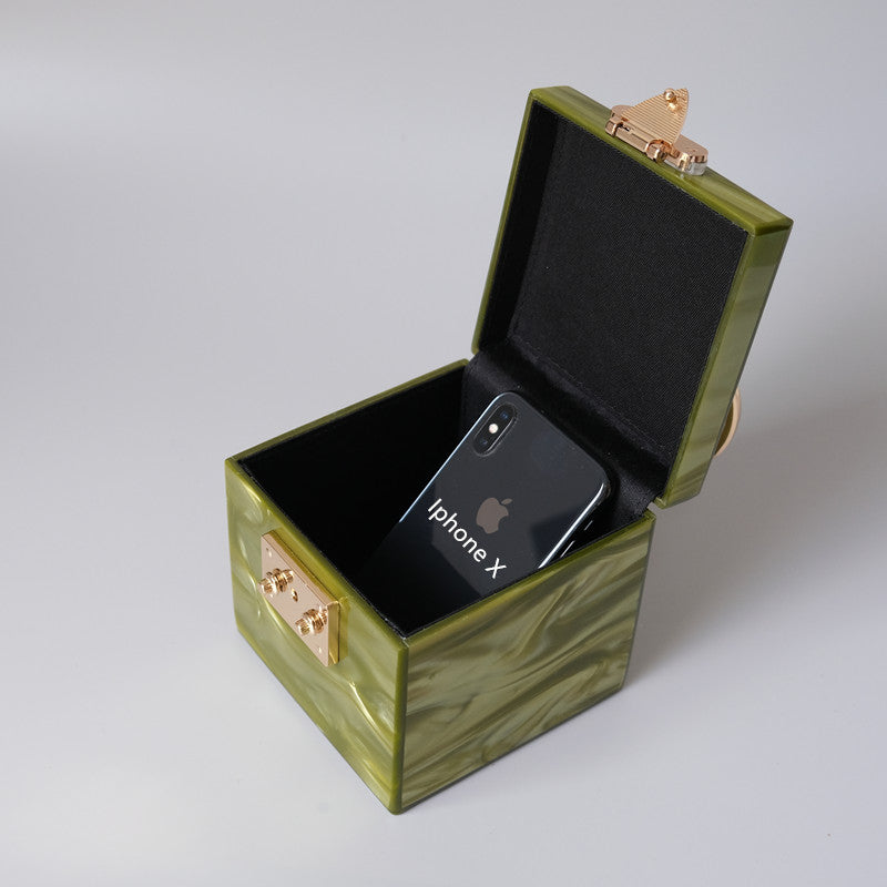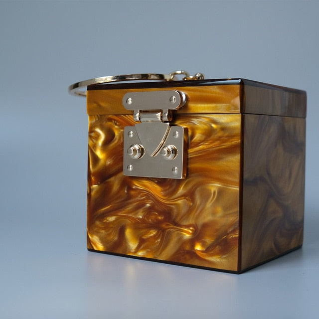 Bolso con asa superior con forma de caja y estampado de piedra con material de PVC