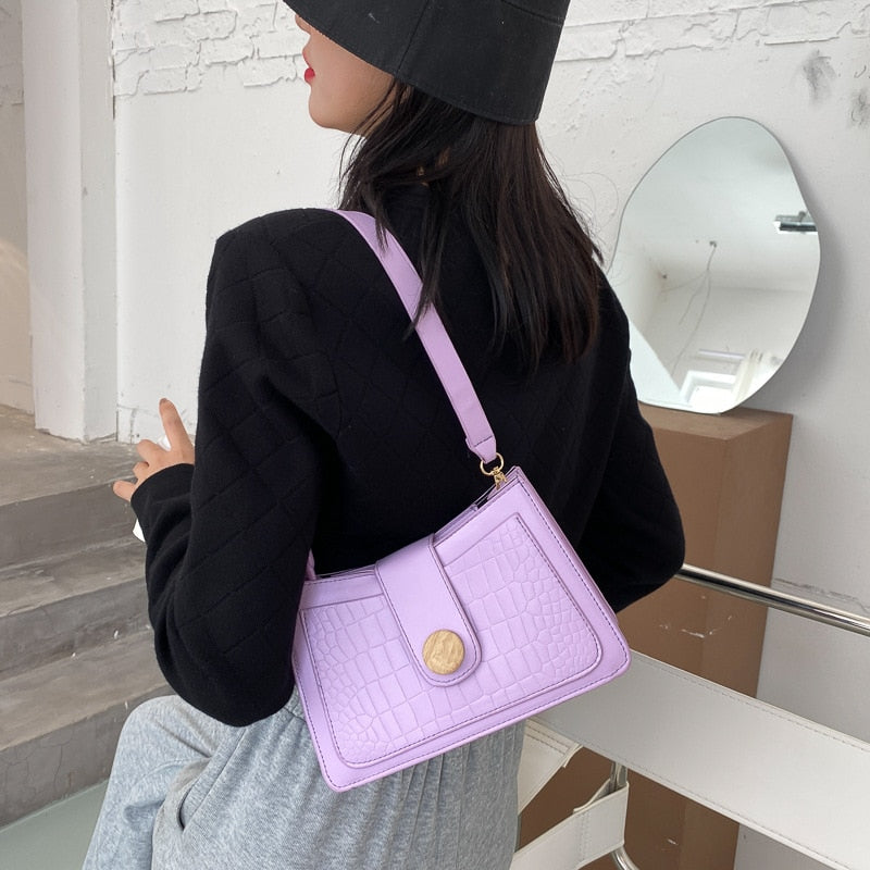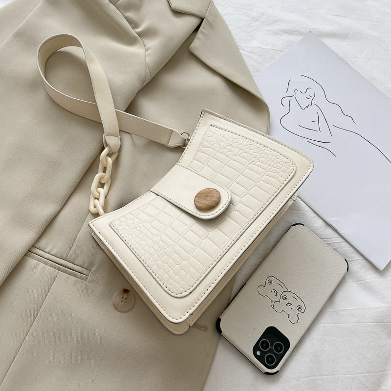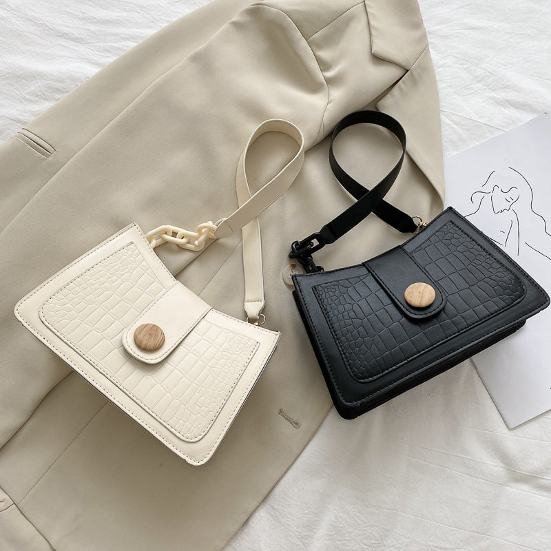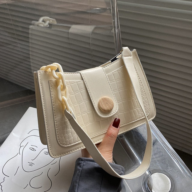 Bolso de hombro de poliéster con estampado de piel de cocodrilo con combinación de botón y correa de cadena