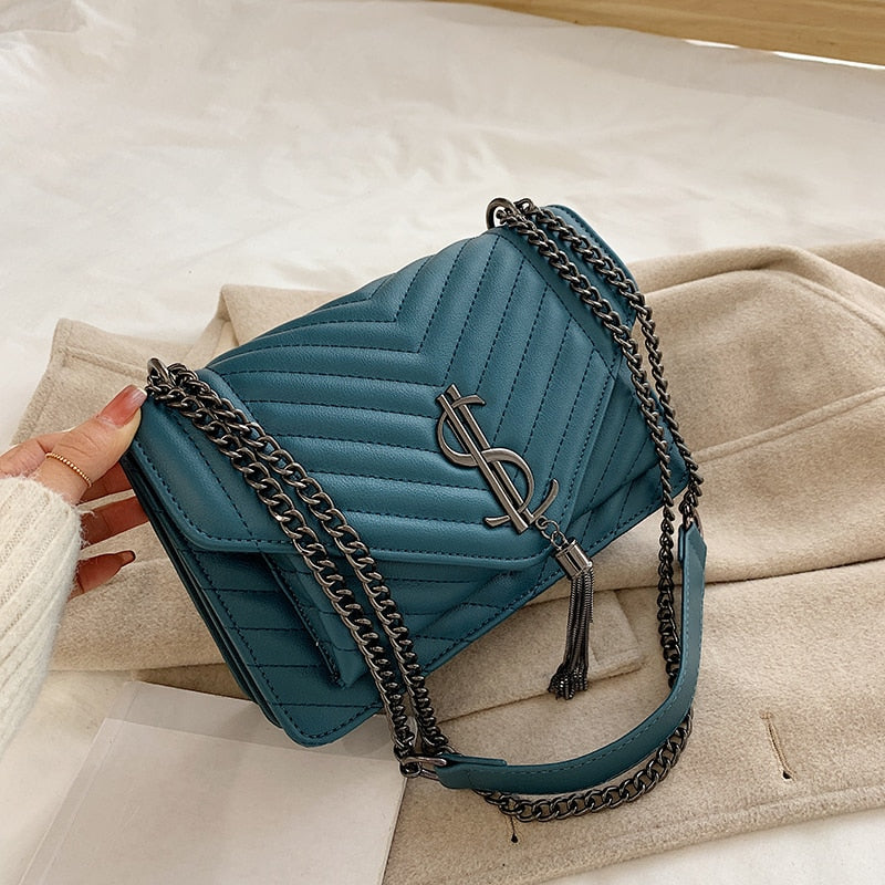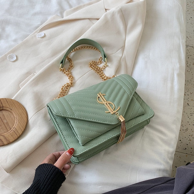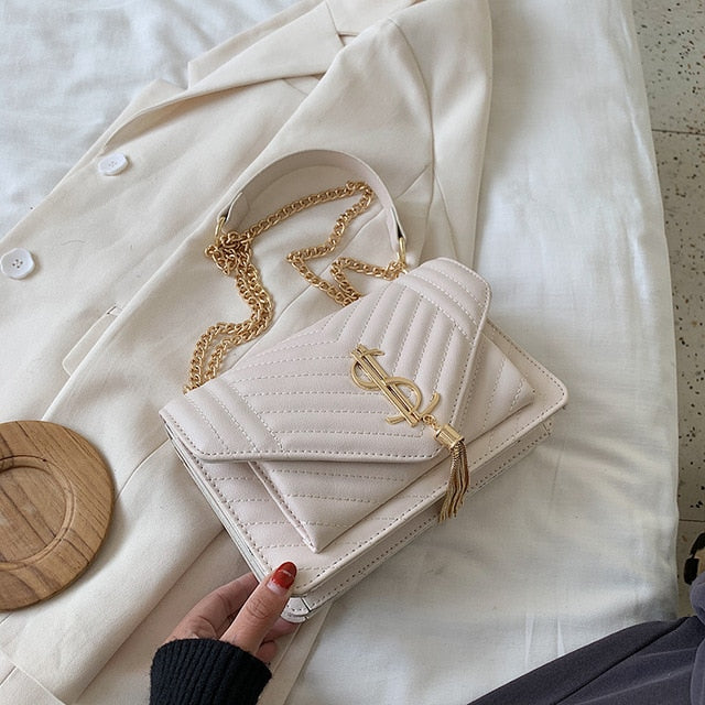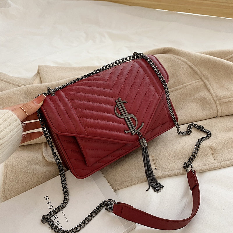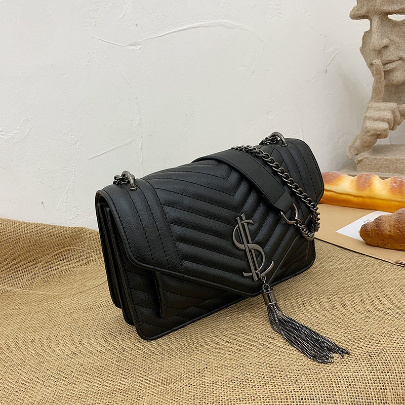 Bolso de hombro con estampado de rayas con decoración de borlas y cuero sintético
