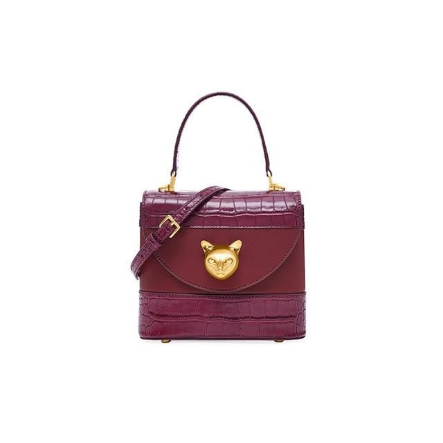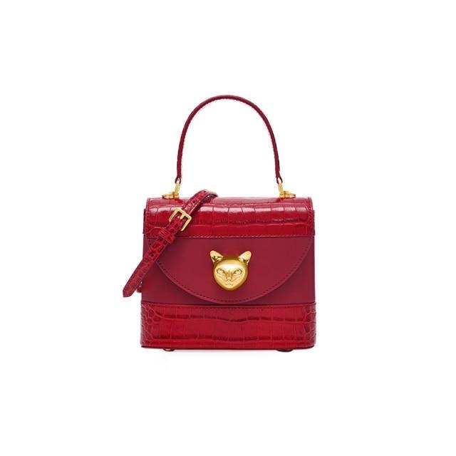 Bolso clásico con asa superior maciza y decoración de metal con cabeza de Lyon