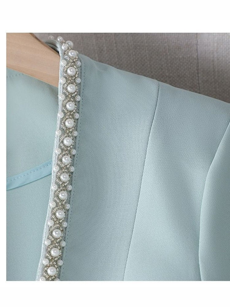 This blazer is perfect for your work wardrobe. It is made of polyester and has a v-neck, half sleeve, and solid color. It has a timeless style that will never go out of style.