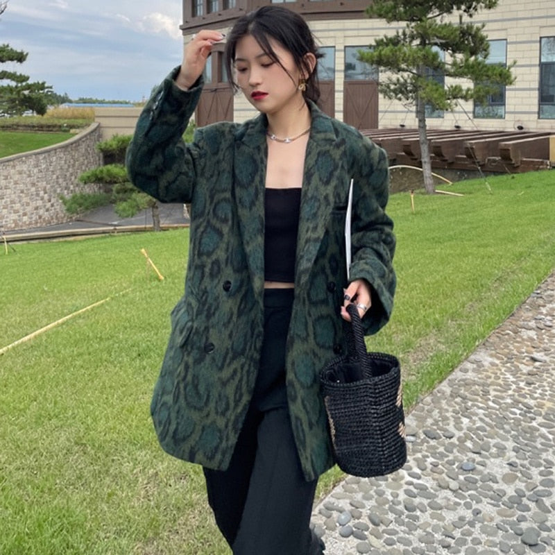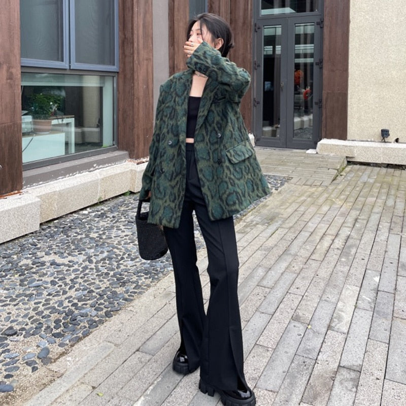 This stylish women's blazer is a convenient and chic choice that adds instant sophistication to any casual outfit. Pair with a simple tank top and jeans for a versatile look that goes with anything. The beautiful green leopard pattern is a versatile choice that goes with so many different outfits. Stay cool and comfortable with the lightweight cotton materials.