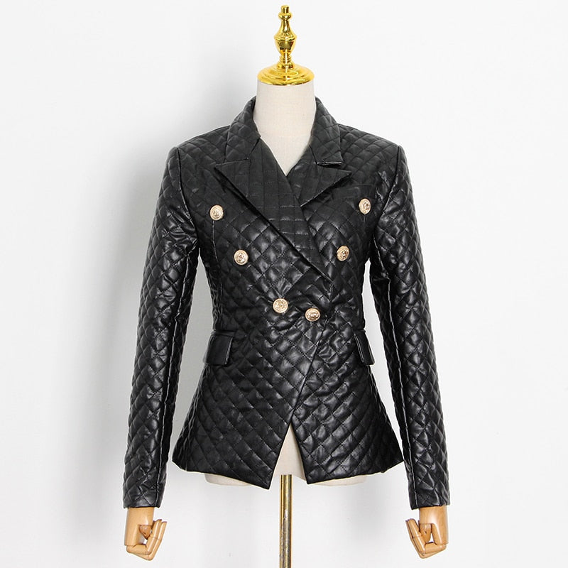 Americana con estampado de rombos con bolsillo, cierre de doble botonadura, tipo de tela Oxford y decoración con botones