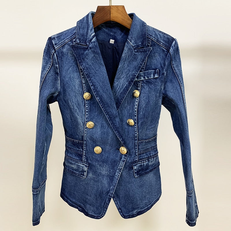 Americana de poliéster y algodón con doble botonadura y cuello con muesca