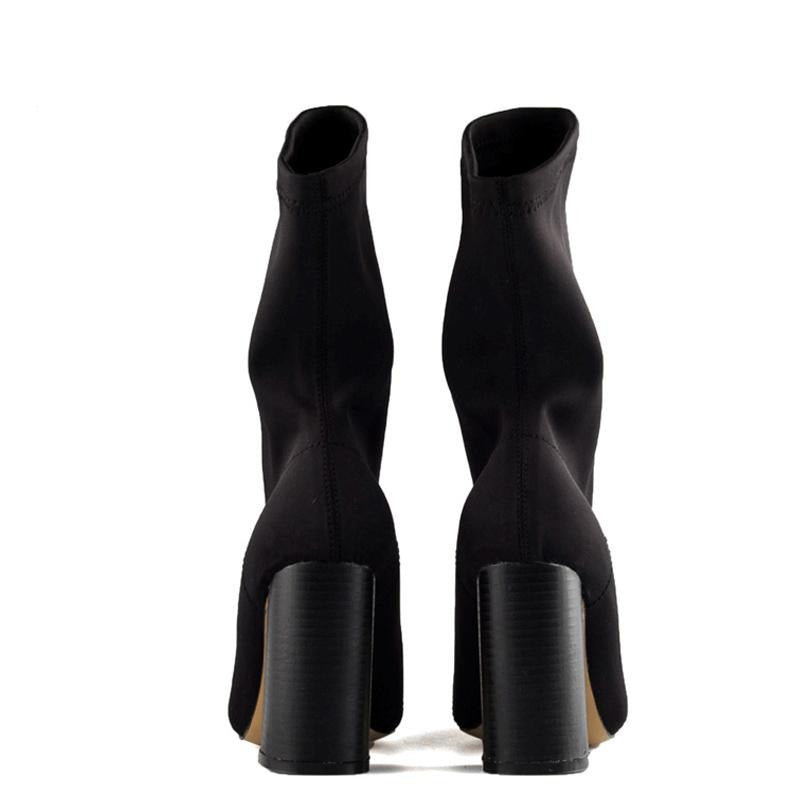 <transcy>Botines de mujer de tacones de punta puntiaguda elásticos de hilo elegante</transcy>