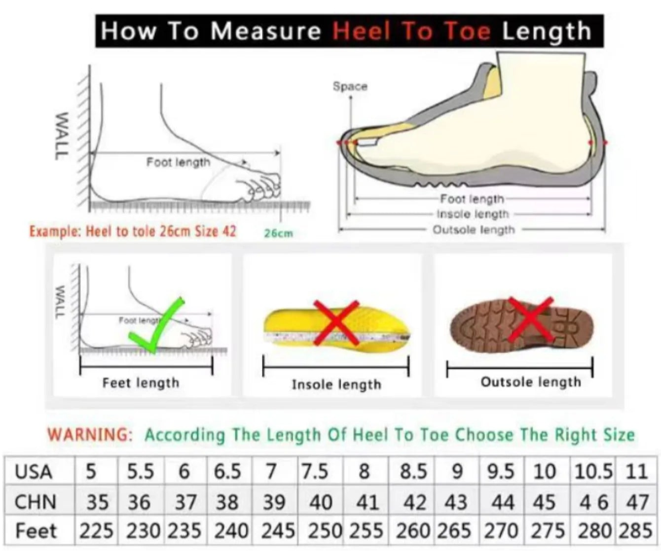 Attention: Please Measure Carefully Your Feet Length From Heel to Toe and Compare with Our Size Guide So You Choose Correct Size. Measurements in CM.