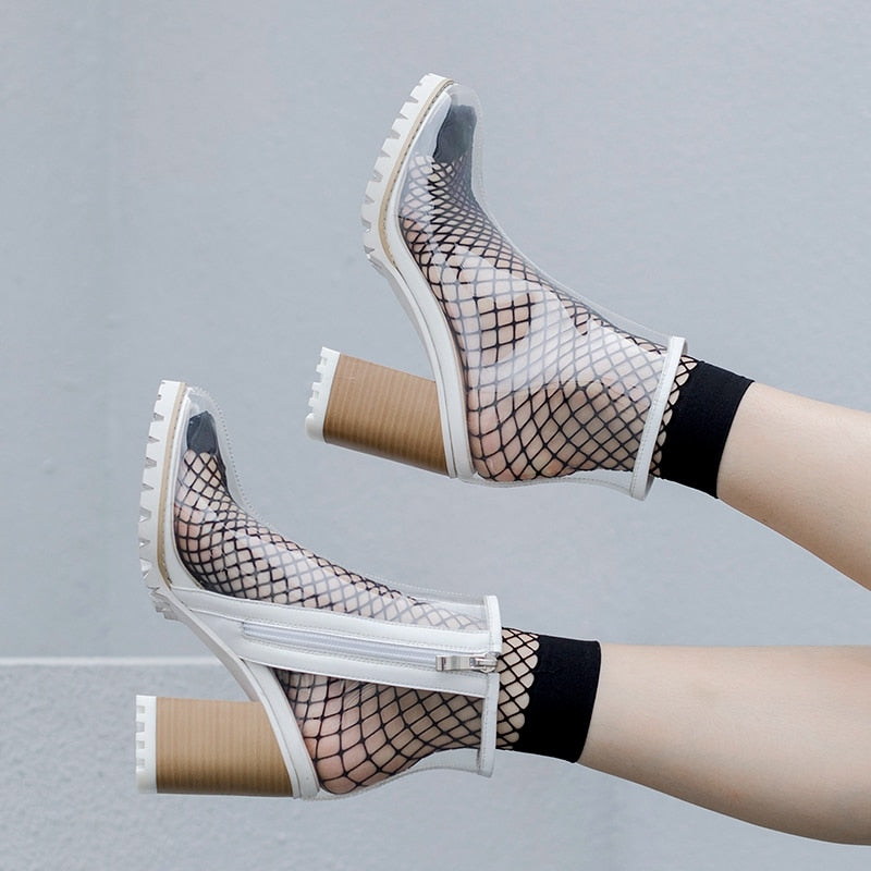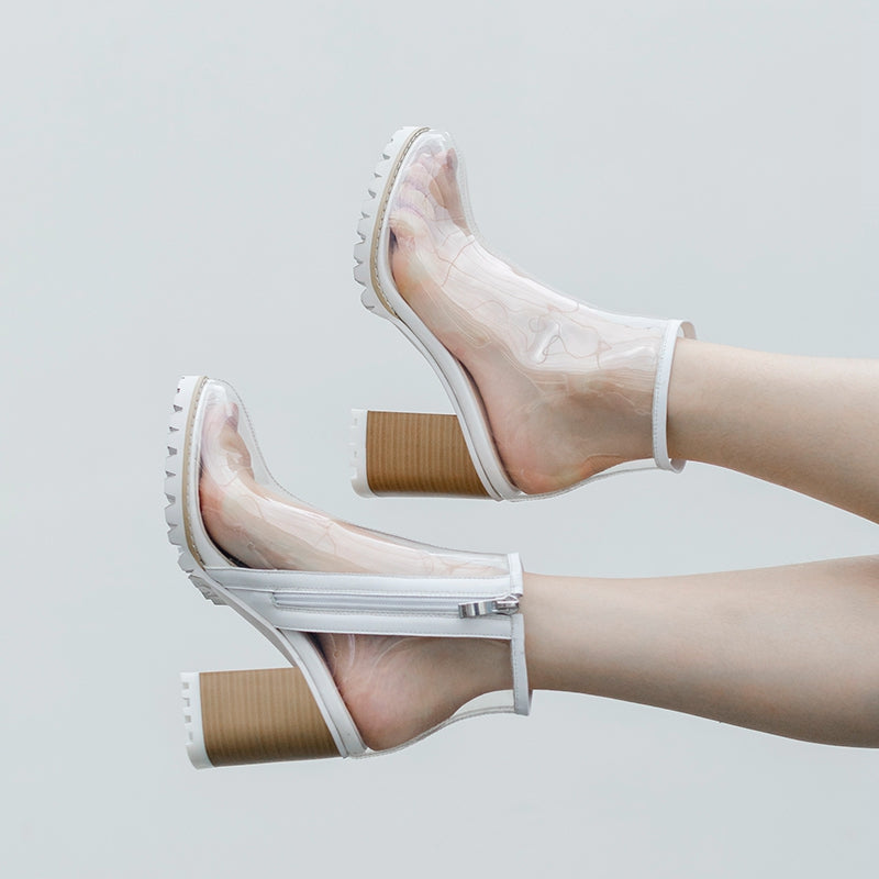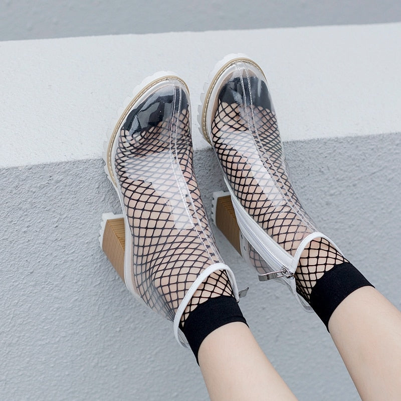 <transcy>Botines de mujer transparentes de PVC sexy estilo Kim Kardashian</transcy>