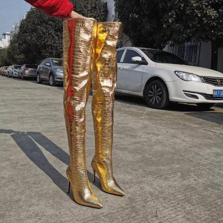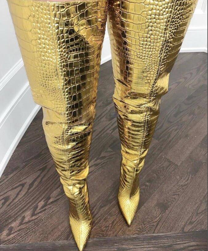 Botas sobre la rodilla de piel dividida con estampado animal Rome
