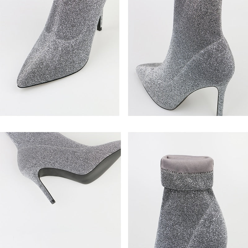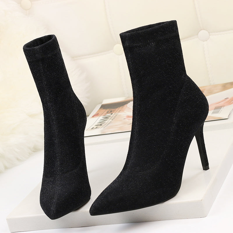 <transcy>Botines de mujer de punta estrecha de microfibra sexy tacones finos</transcy>