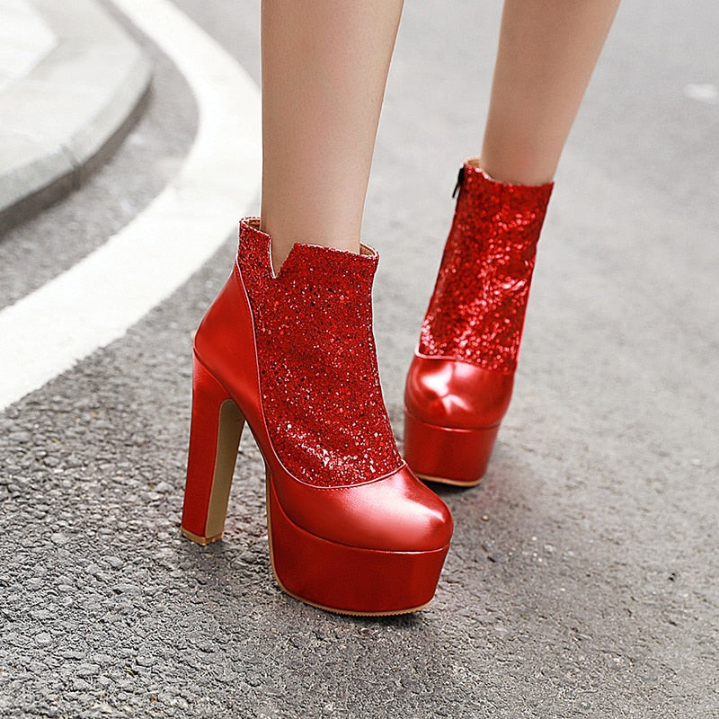 Pump up your style with these awesome women's boots! These boots are the perfect blend of style and comfort. Made of PU material, these boots are not only durable but also provide comfort to your feet. These boots have a square heel and a super high heel. To make these boots even more appealing, there is bling decoration on it.
