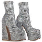 Step into the spotlight with these daring Spotlight Strike Mid-Calf Boots. Featuring sleek Chelsea boot styling and easy slip-on design, they combine effortless wear with bold rhinestone accents that catch every eye. Elevate your look with boots that command attention and exude confident flair.