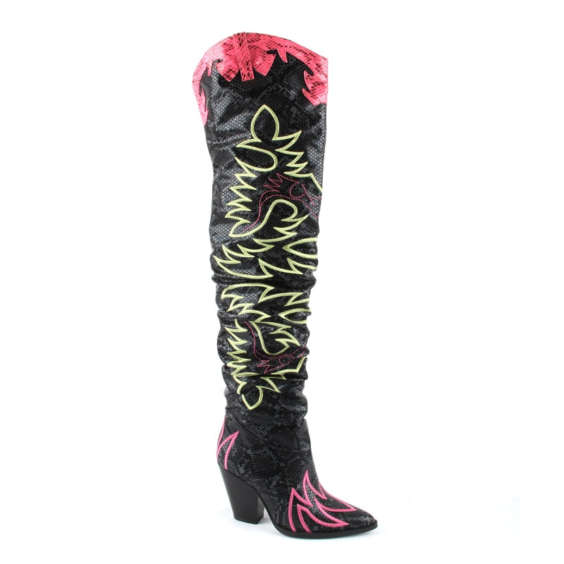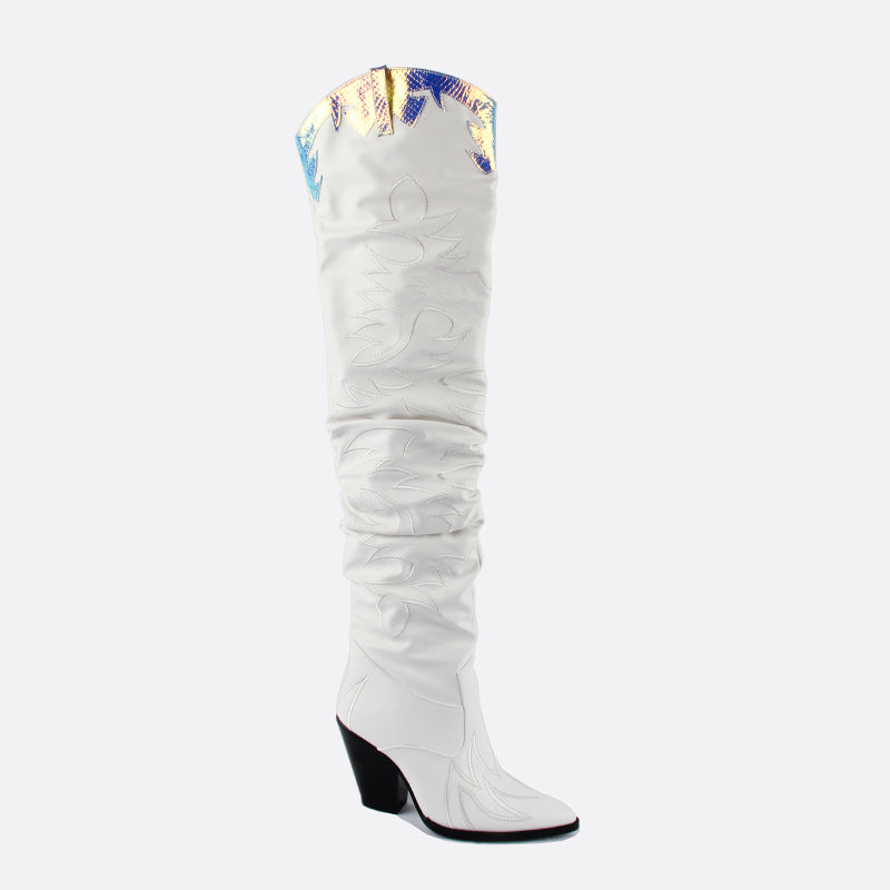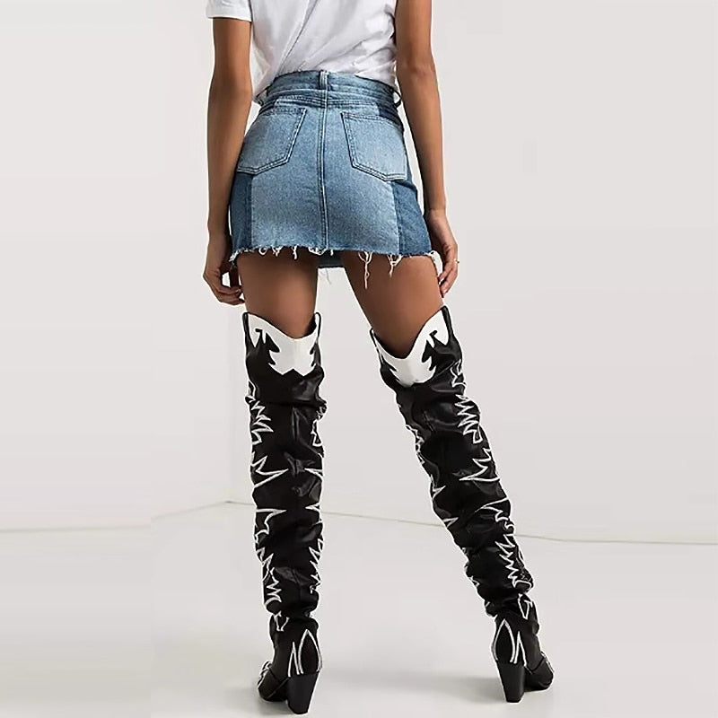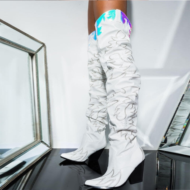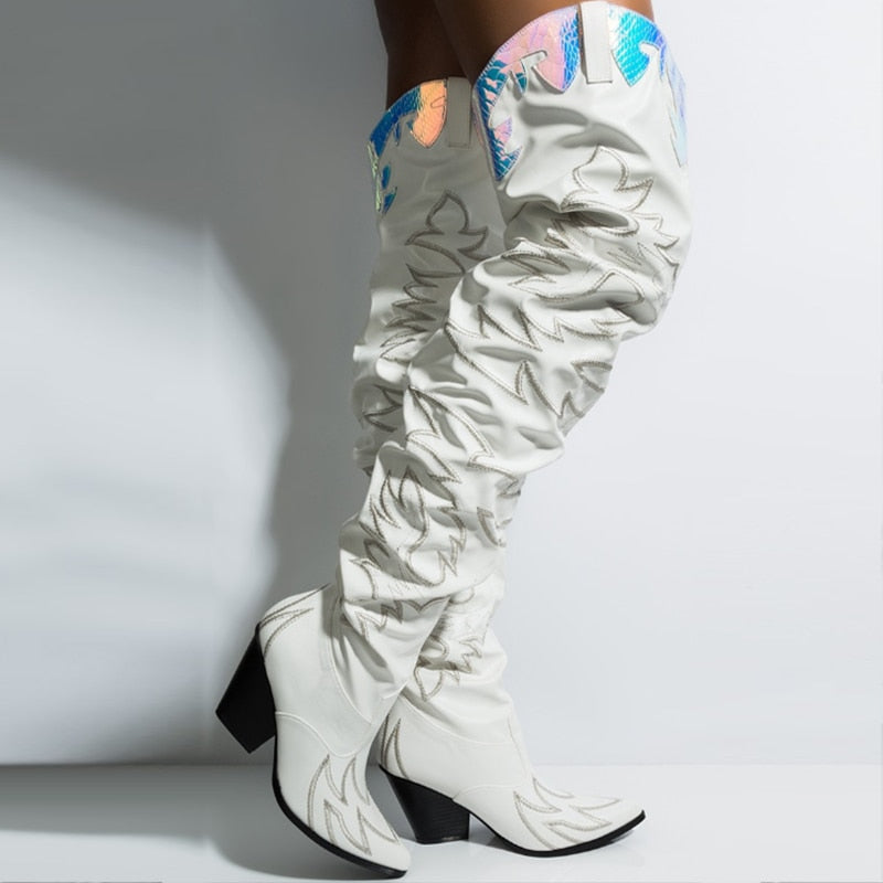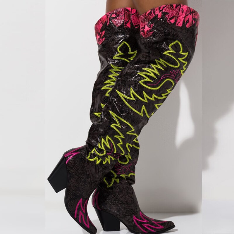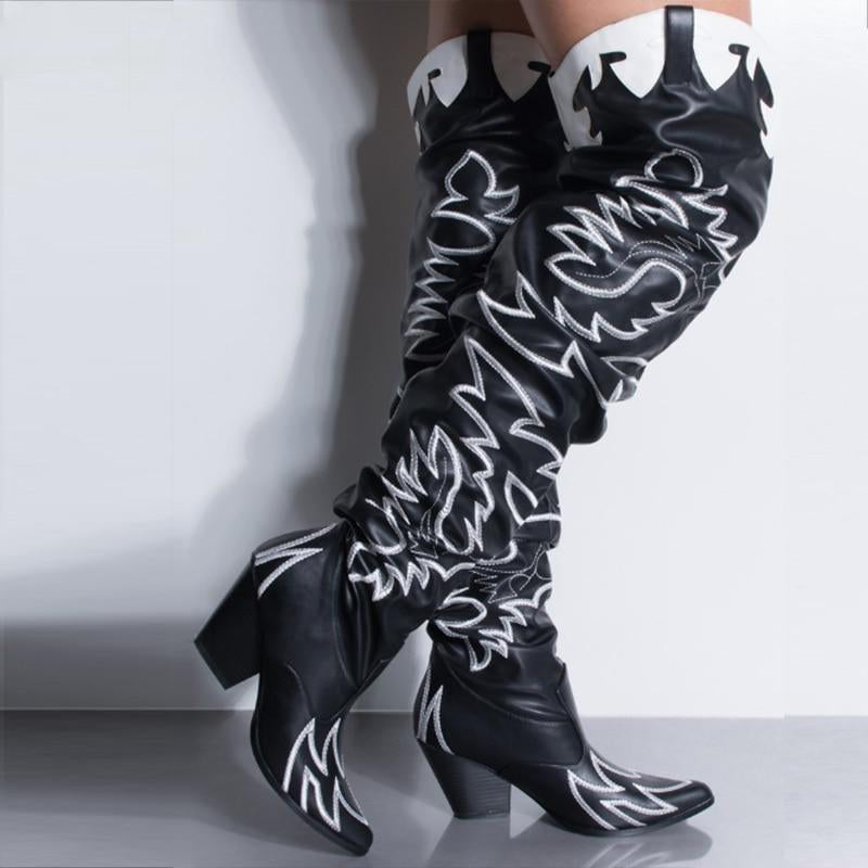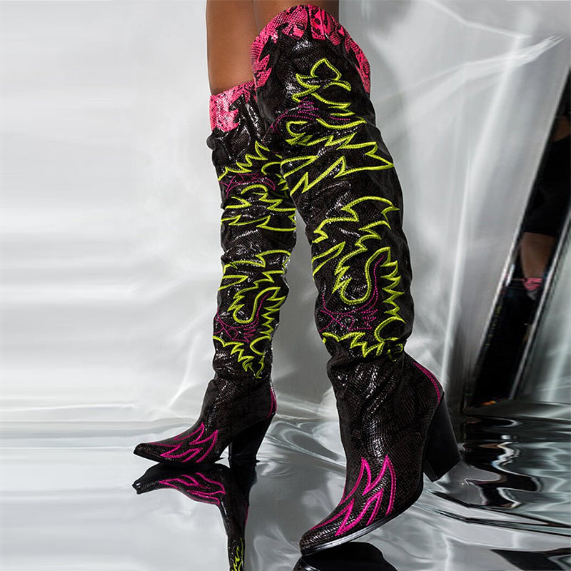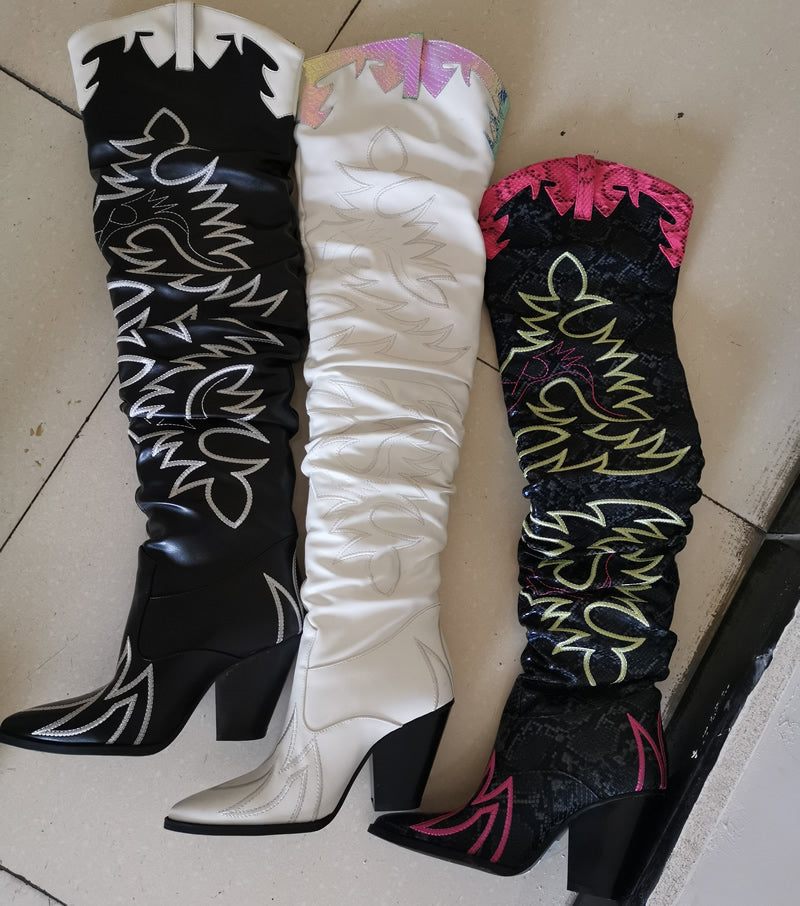 <transcy>Botas sobre la rodilla con punta puntiaguda bordada de vaquera occidental</transcy>