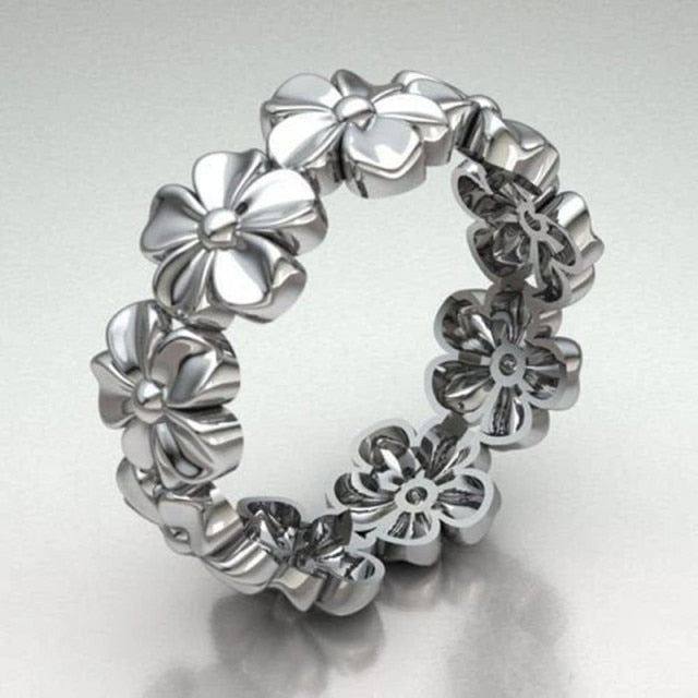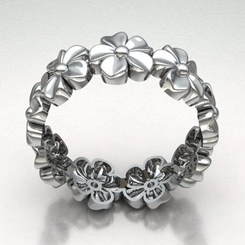 Anillo estilo cadena floral de plata hecho de material de asignación de zinc