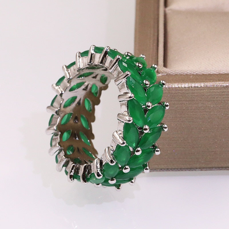 Anillo de metal de cobre con piedras de circonita cúbica en forma de enredadera
