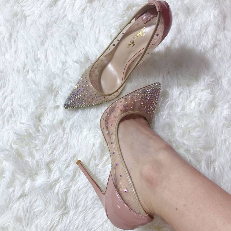 This elegant pair of shoes have a pointed toe and rhinestone decoration, that makes them look stylish. The see-through mesh material makes them look and feel great and you can wear them to work and out on the town.