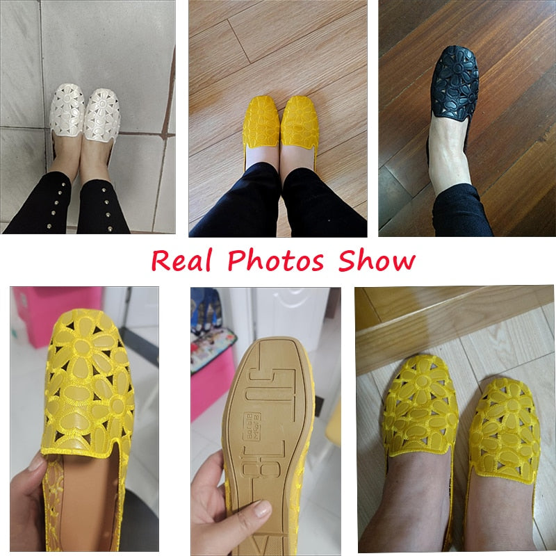 Mocasines planos de piel sintética con estampado floral y opción de hueco