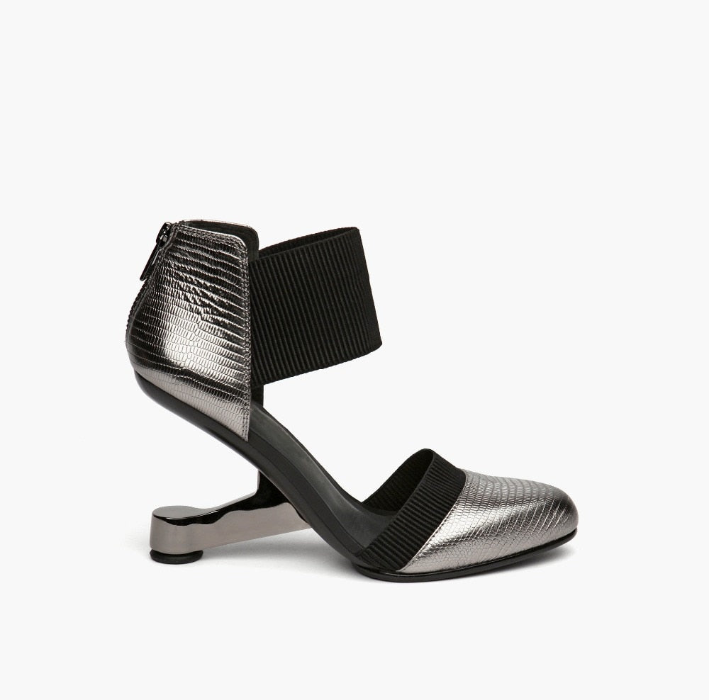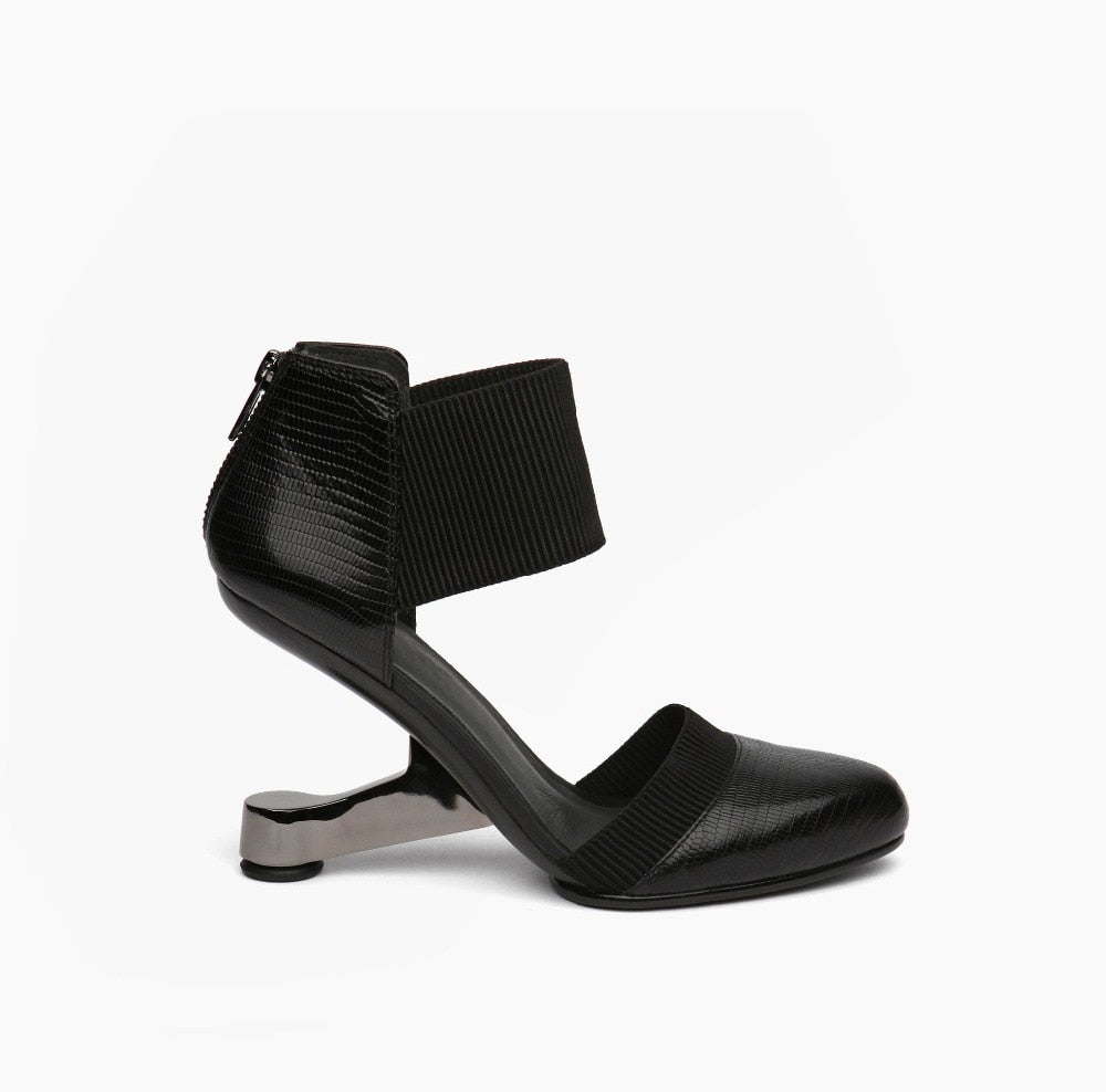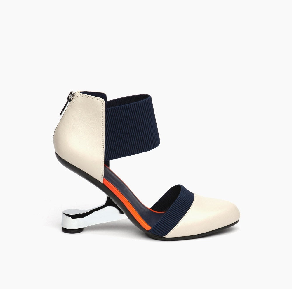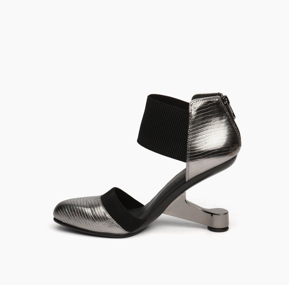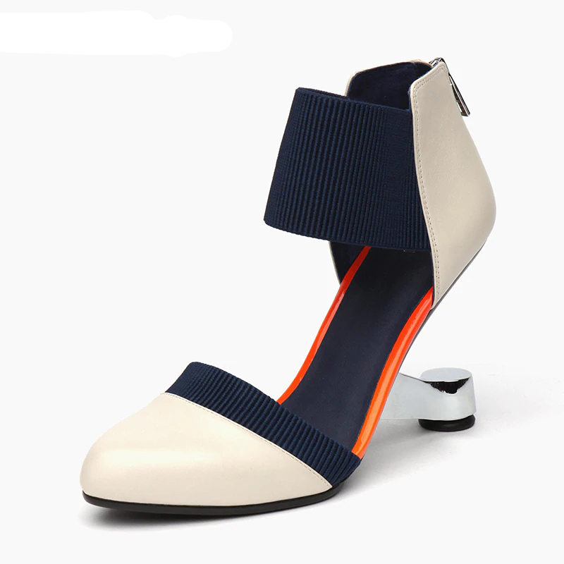 Cuero genuino sobre tacón extraño de punta redonda sintética