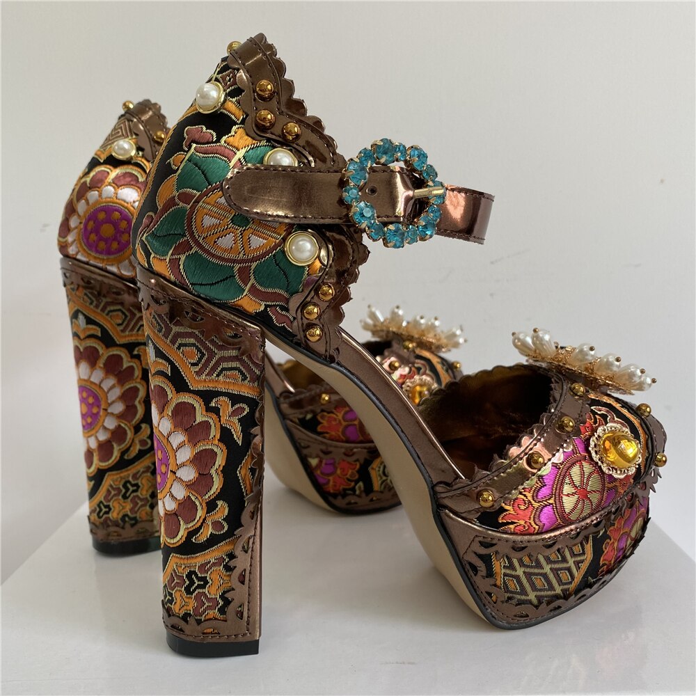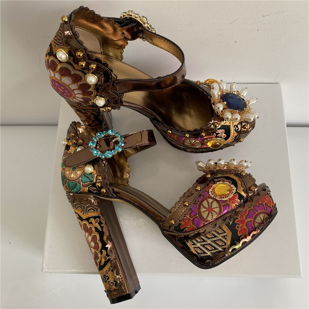 These stylish Double Bubble Disco Queen Heel Shoes feature mixed colors, a rubber outsole, genuine leather lining, sheepskin insole, hoof heels, and a buckle strap. Elevate any look with the 8cm-up heel and look good all night long.