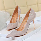 Tela de lentejuelas con purpurina en zapatos Scarpin básicos con punta puntiaguda