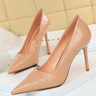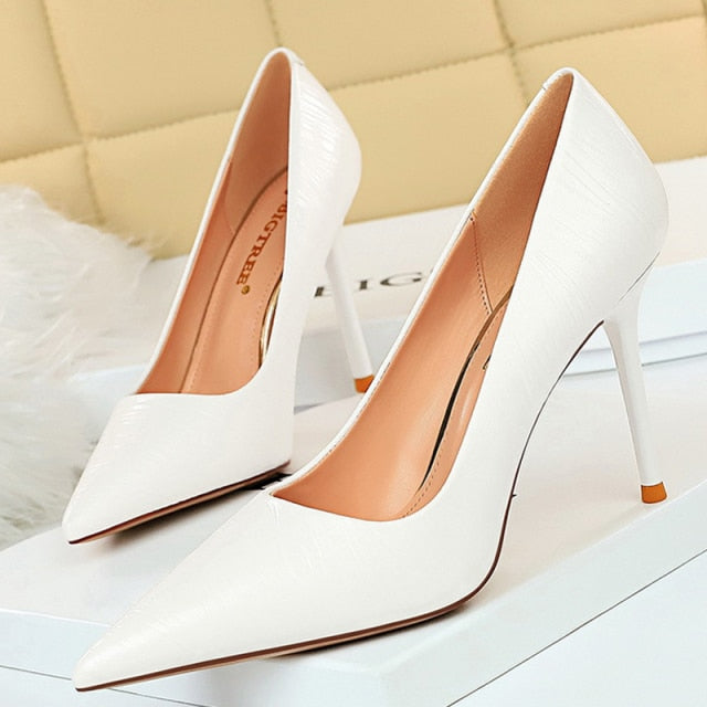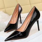 Zapatos de salón sólidos con punta puntiaguda con patrones de ondas sutiles y material de charol