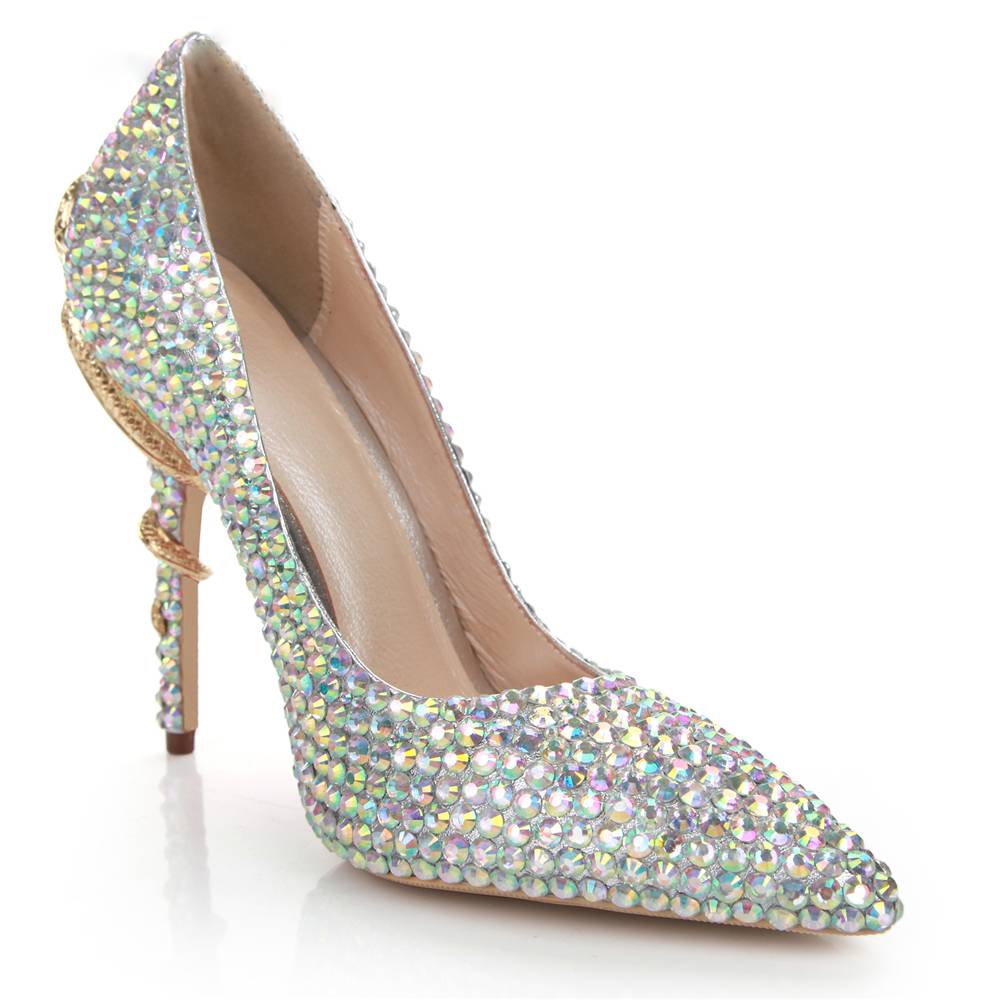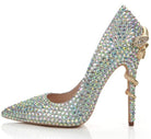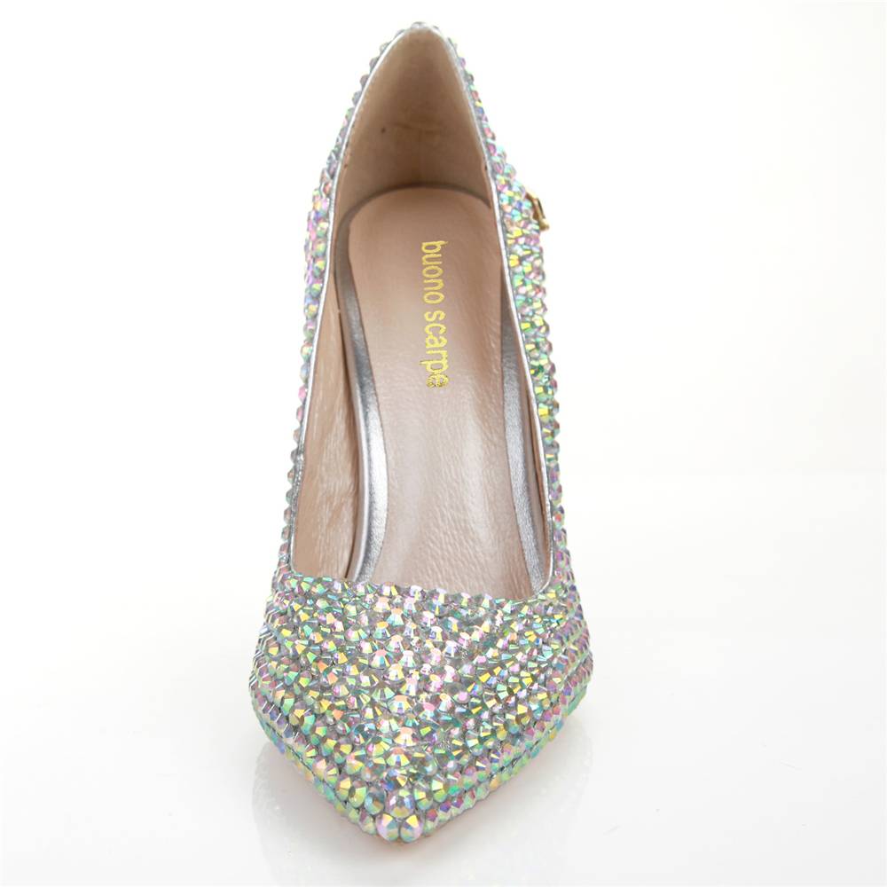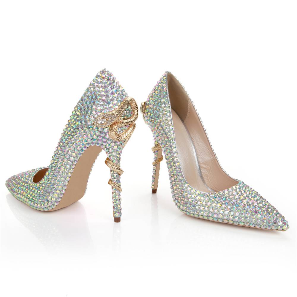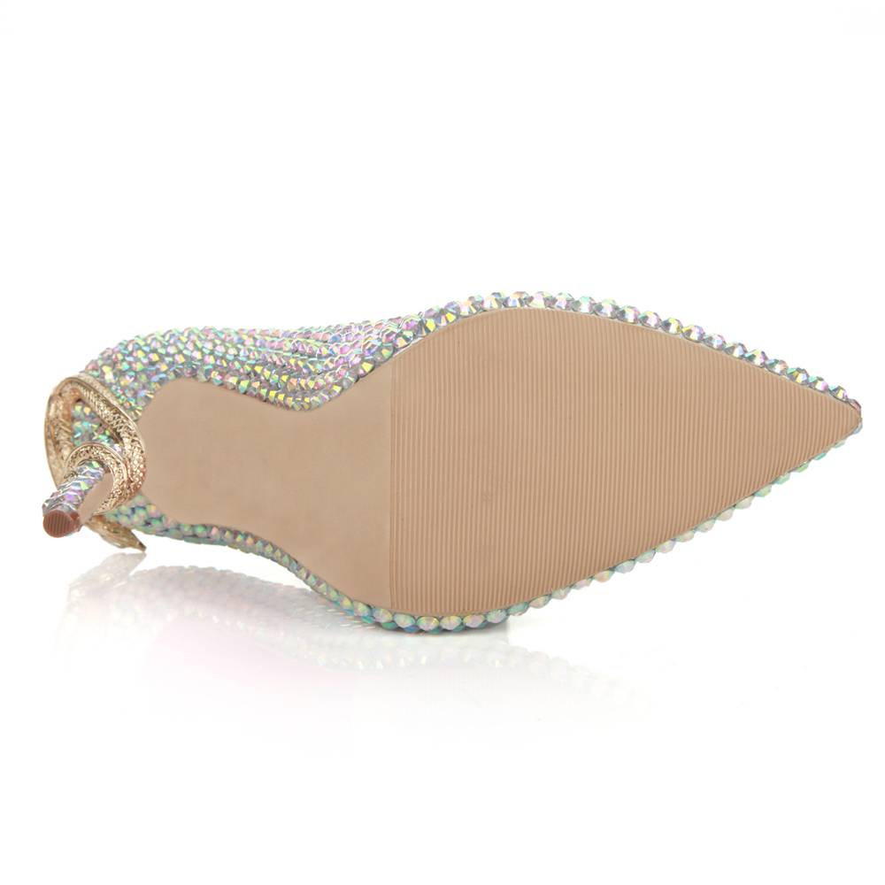 Tacones de aguja con punta en punta de diamantes de imitación de piel de oveja genuina