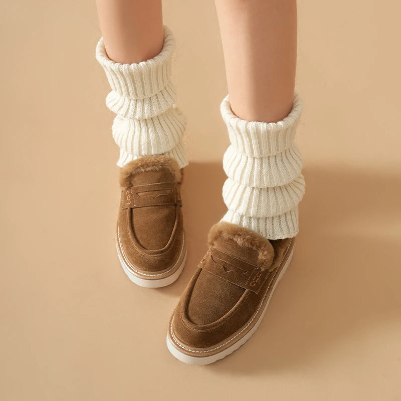 Suede Fur Design Platform Loafers