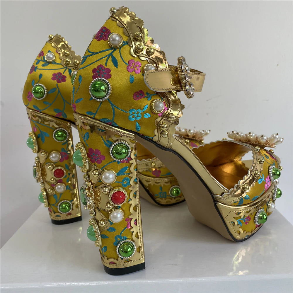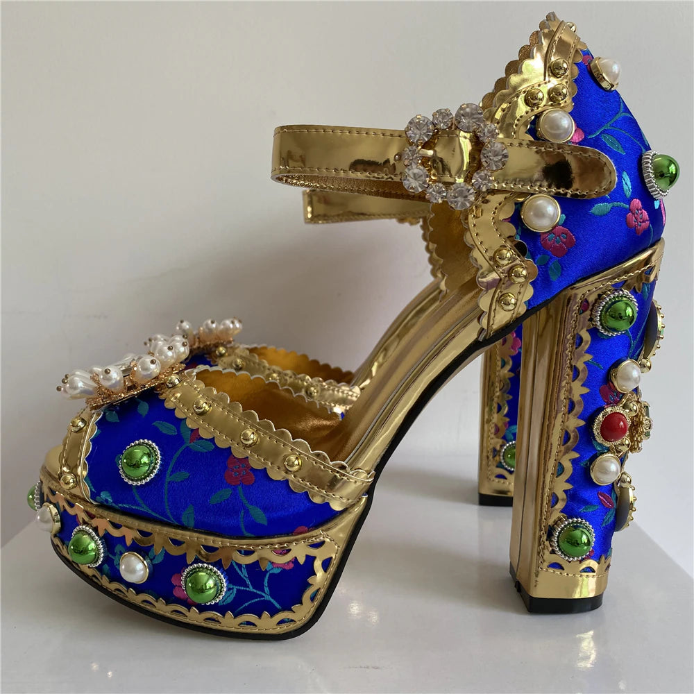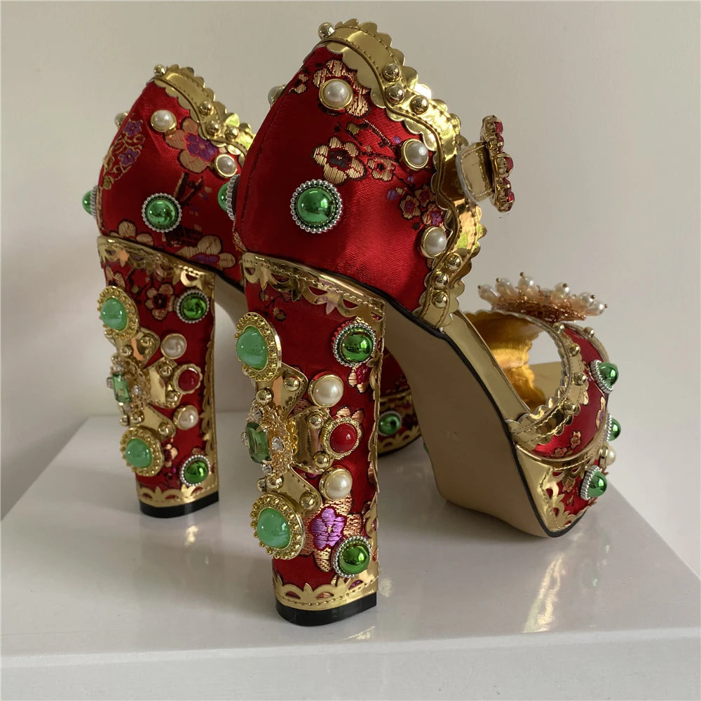 These Your Killer Queen Heels Shoes feature an upper made of satin with genuine leather lining, a sheepskin insole, and a rubber outsole. These shoes have a hoof heel and a buckle strap closure, with a platform height of 3-5 cm and an 8-cm heel. Dress up in style and comfort with these killer heels.