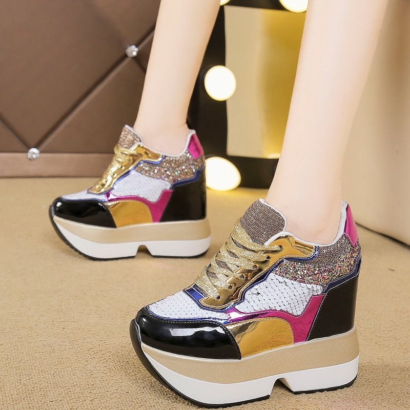 Feel the confidence you have when you're wearing these women's wedges. With their ultra-high heels, these stylish and comfortable sneakers are sure to brighten up any outfit. The faux-leather upper is stylish and practical so you can wear your favorite outfits all day long. The soft, flexible sole is comfortable and versatile.