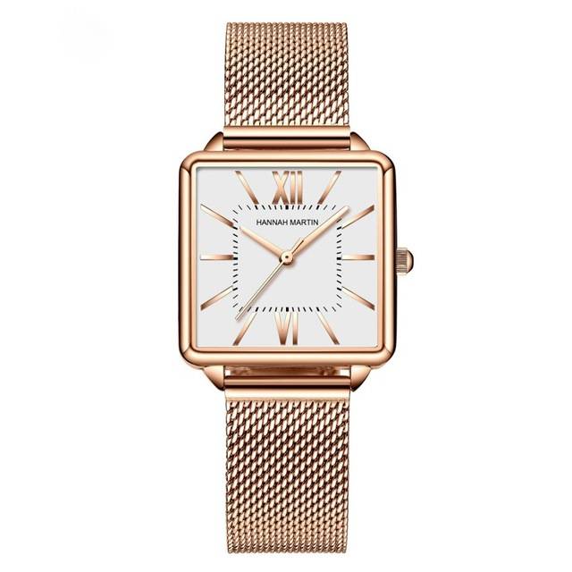 Reloj clásico minimalista cuadrado de acero inoxidable y correa con movimiento de cuarzo