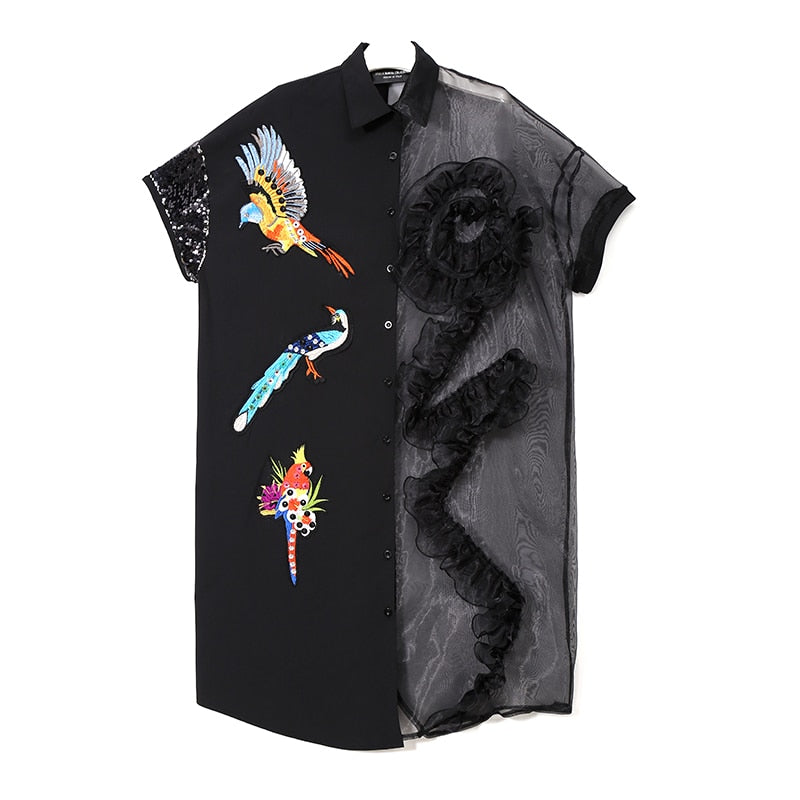 Vestido a media pierna con estampado de animales bordado de gasa de malla de acetato de algodón