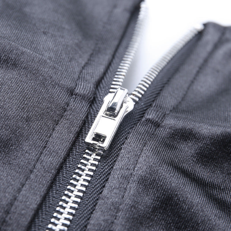 Body sólido de manga larga con cuello de tortuga, cierre de cremallera, material de poliéster de algodón y tipo de tela de satén