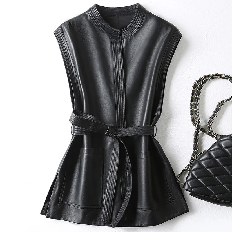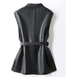 Stay stylish and sleek with our Glad To Be Your Inspiration Vest. Made with faux leather and PU material, it features a belt closure, adjustable waist, and practical pockets. Perfect for the office lady, the sleeveless design and regular length make it a versatile addition to your wardrobe.