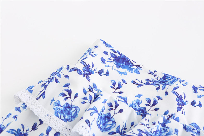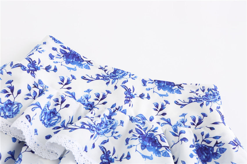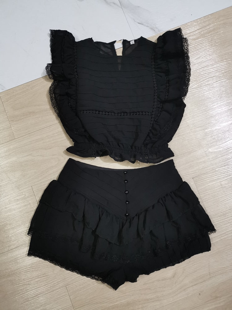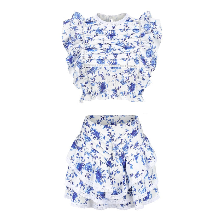 Conjunto corto y top corto floral plisado con mangas de mariposa de poliéster