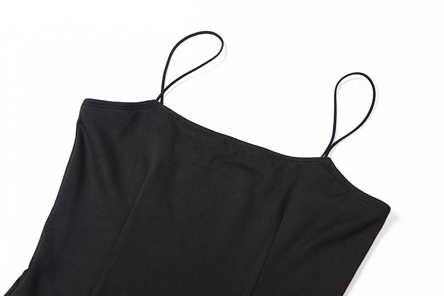 Vestido largo de poliéster y licra con abertura alta y tirantes finos