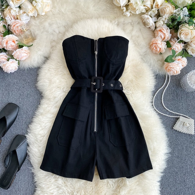 Peleles sólidos de poliéster sin mangas con decoración de bolsillos y fajas