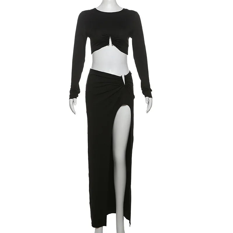 Elevate your style with the Stood There Beside Myself Skirt Set, featuring a bold asymmetrical design that commands attention. Crafted from a sleek blend of spandex and polyester, this solid-colored set offers a daring fit that moves with you, combining comfort and edge effortlessly. Perfect for those who dare to stand out.