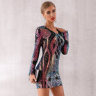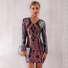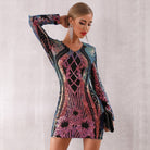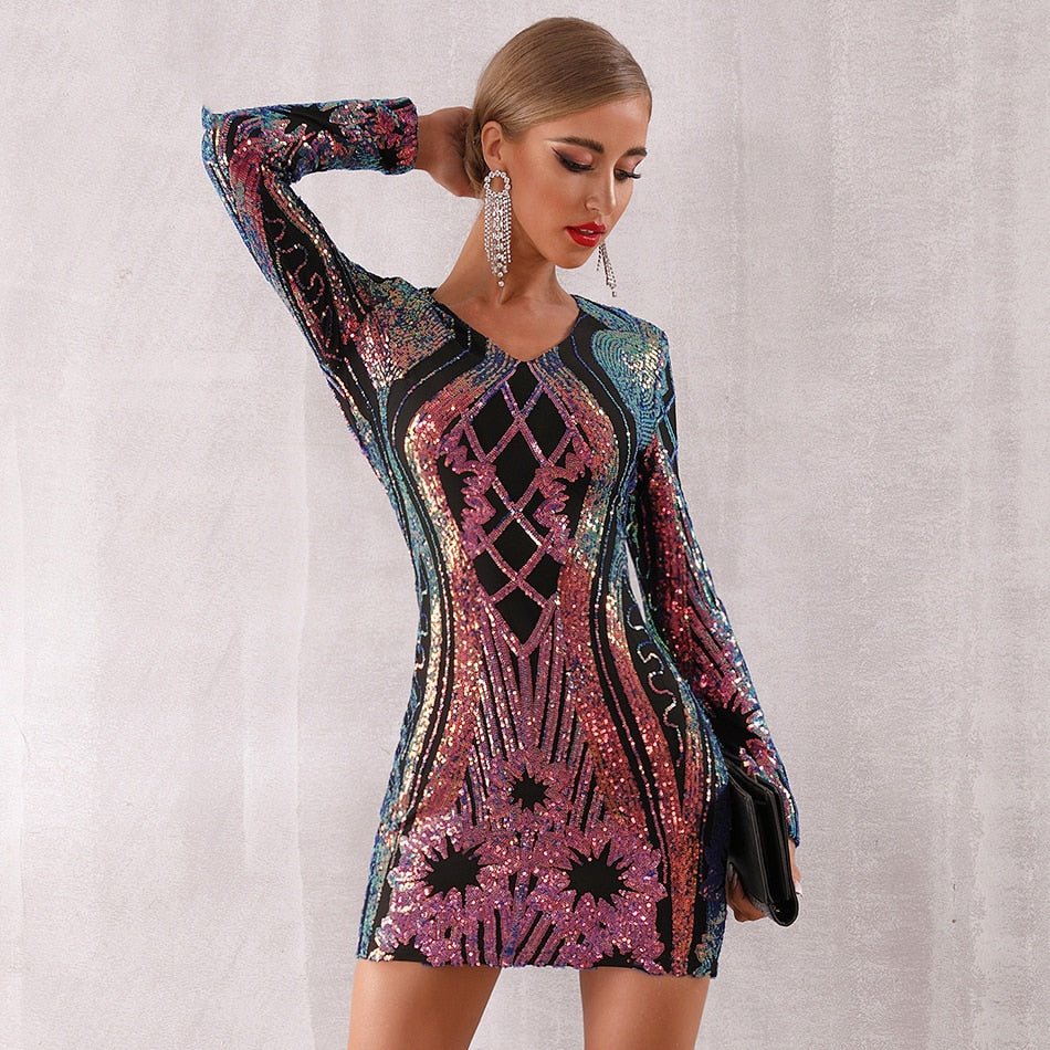 Minivestido de spandex de poliéster de manga larga con decoración de lentejuelas en forma geométrica Ombre