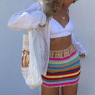 There's nothing like a great-looking skirt for an everyday look that's comfortable, practical, and perfect for any occasion. Wear these stylish women's skirts on a casual day out or going out to the club. These trendy and comfortable women's skirts are made with a knitted construction that ensures they are soft and durable. This skirt has a cute and fashionable colorful striped design.