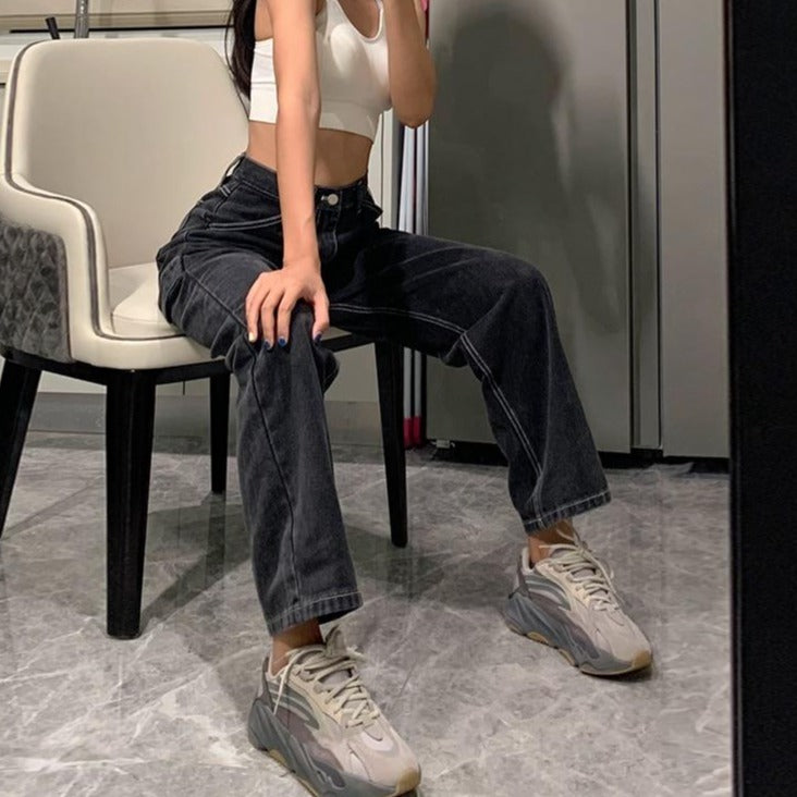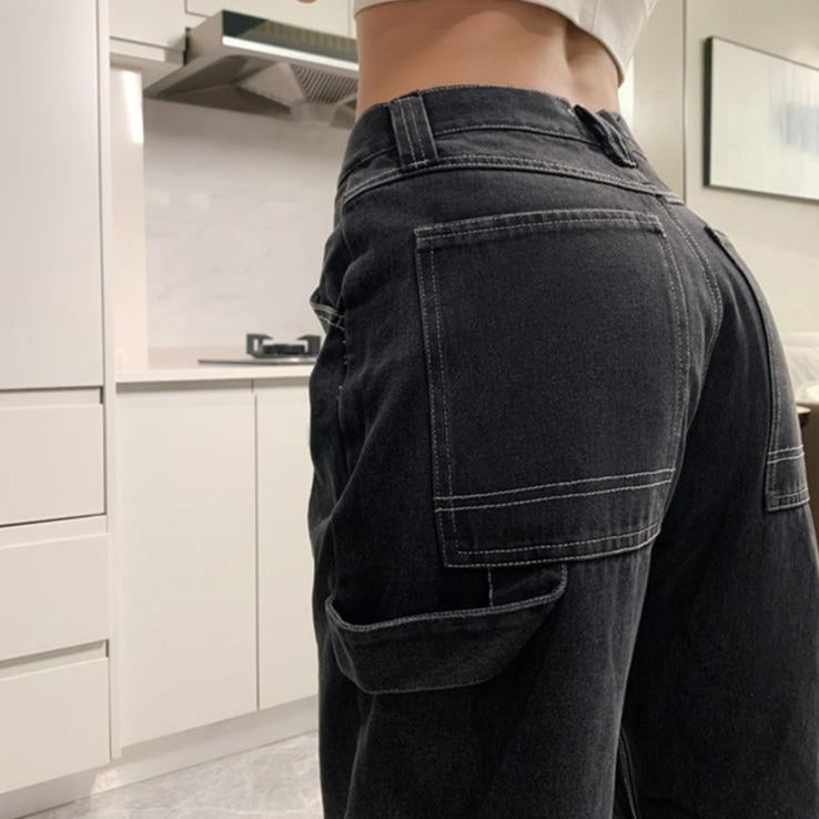 Vaqueros rectos de corte holgado con cierre de cremallera y material de algodón
